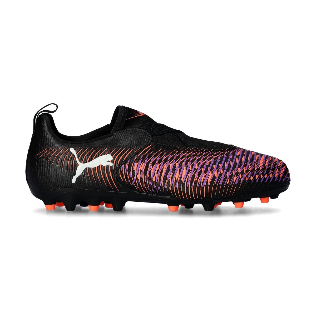 Chaussures de football Future 8 Match LL MG pour enfants. Chaussures de la gamme de base en Black-White-Glowing Red, pour les joueurs habiles.