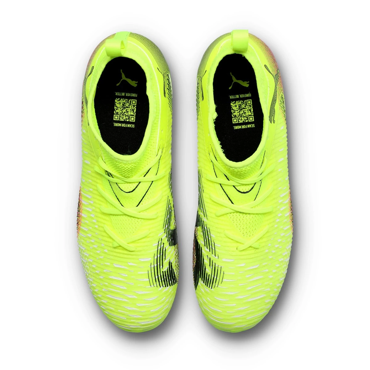 Chaussures de football Puma Future 8 Match MG pour enfants. Chaussures de football synthétiques, pour les terrains en gazon artificiel. Pour les joueurs offensifs en Yellow Alert-Puma Black-Sun Struck.