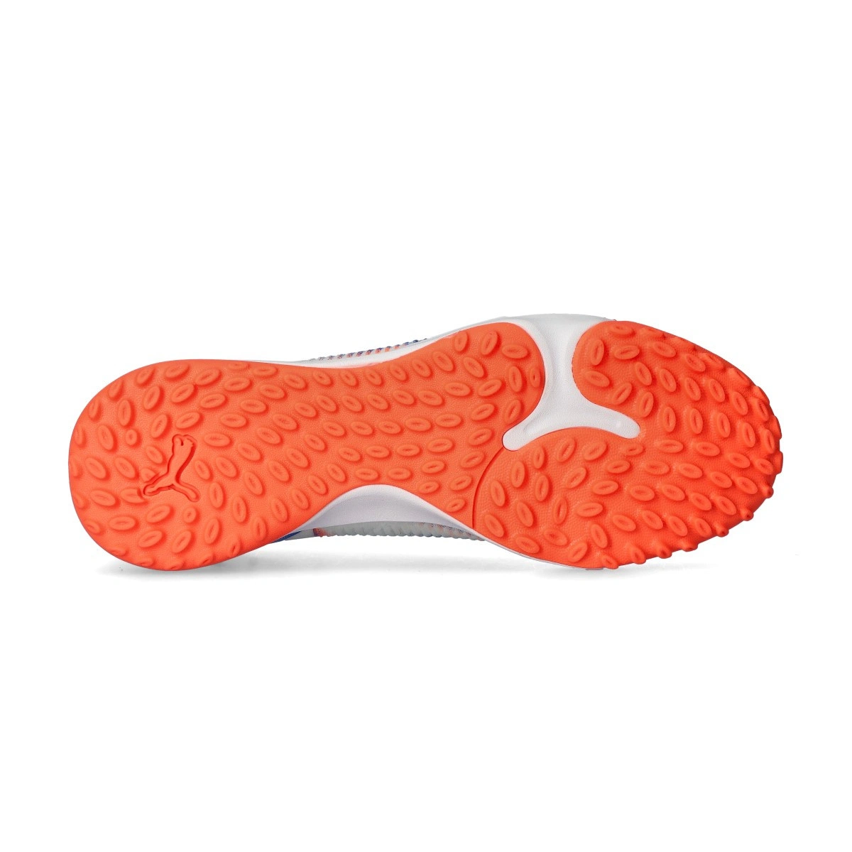Chaussures de football Puma Ultra 8 Match Turf pour adultes. Chaussures synthétiques à utiliser sur des terrains en gazon artificiel ou en moquette. Chaussures basses PUMA White-PUMA Black-Glowing Red.