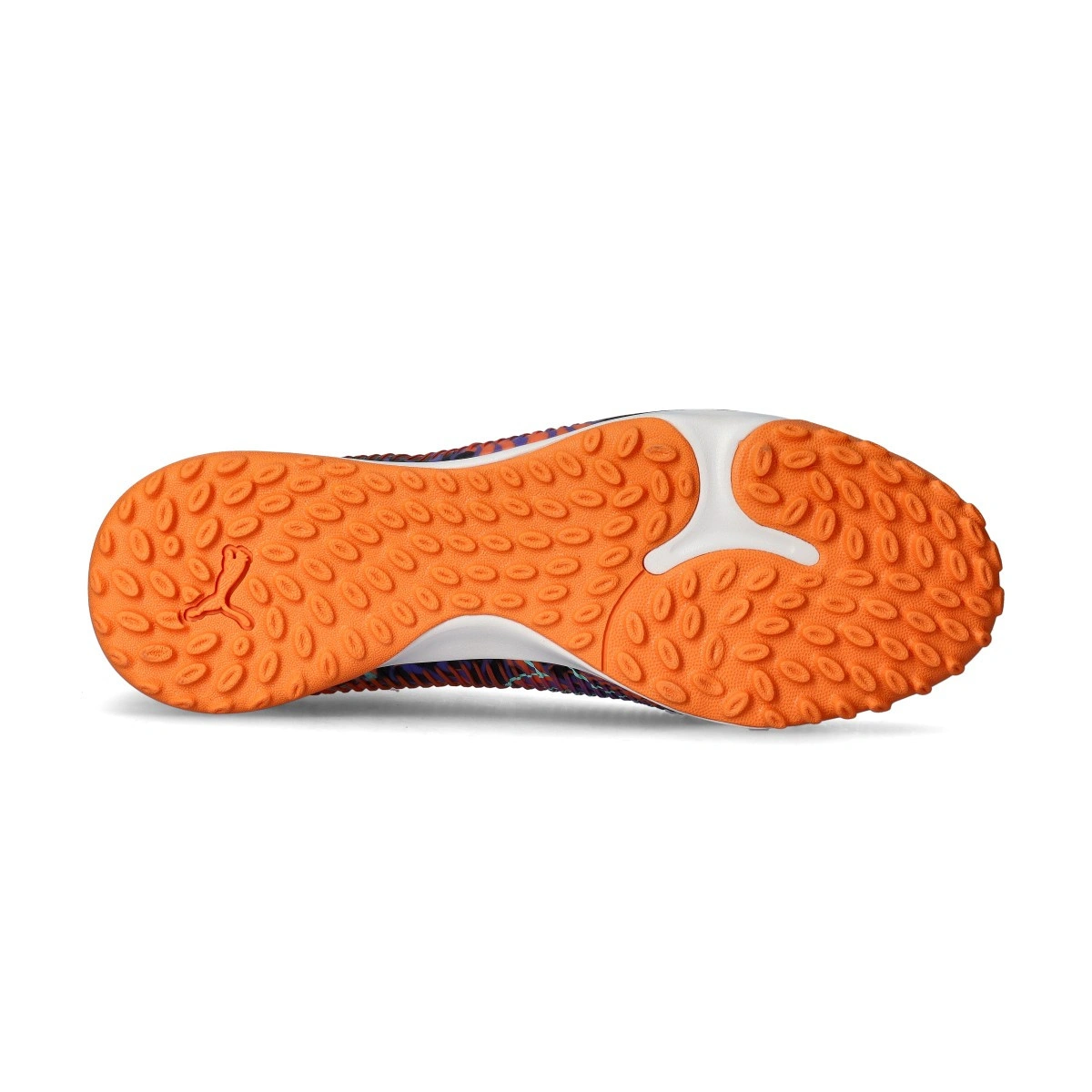 Chaussures de football Puma Ultra 8 5Match Turf pour adultes. Chaussures synthétiques à utiliser sur des terrains en gazon artificiel ou en moquette. Chaussures bas de gamme en Black-White-Glowing Red.