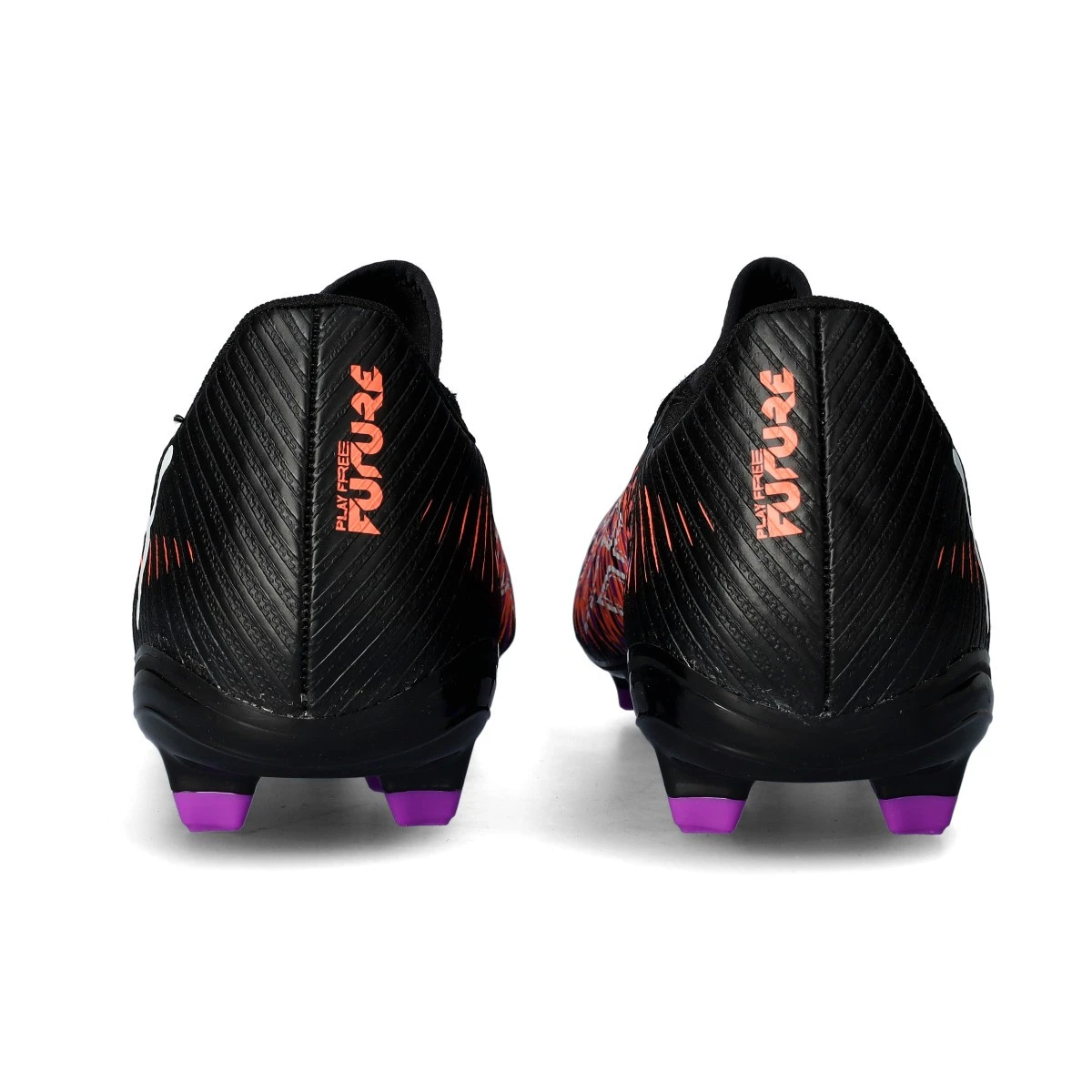 Chaussures de football Puma Future 8 Play FG/AG. Chaussures synthétiques à utiliser sur les terrains en gazon artificiel et en gazon naturel. Chaussures bas de gamme en Black-White-Glowing Red.