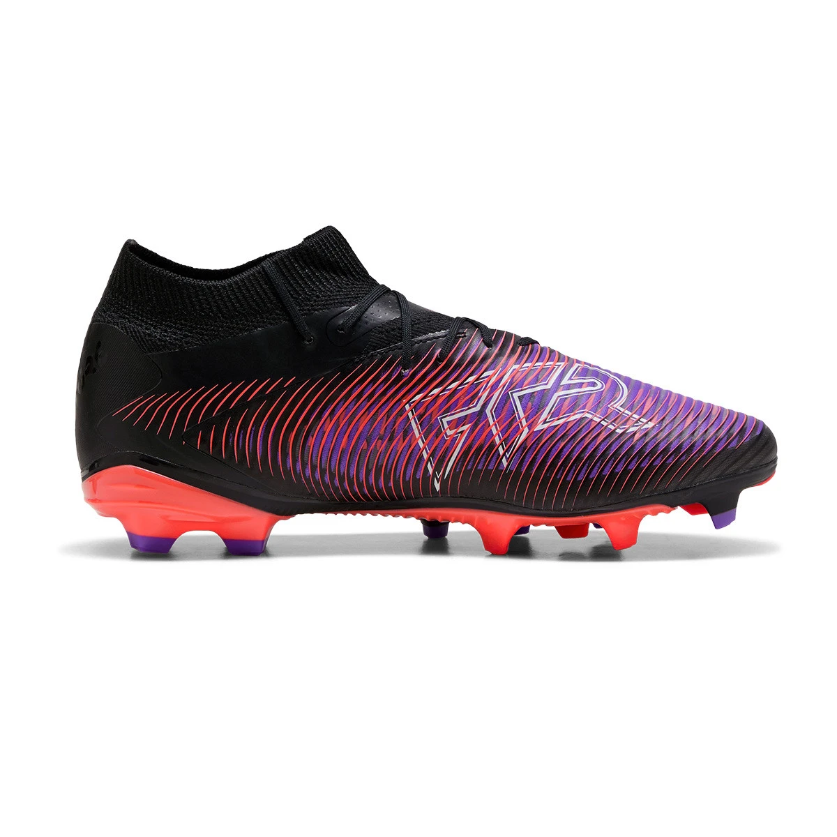 Chaussures de football Puma Future 8 Pro FG/AG. Chaussures de football synthétiques, pour terrains en gazon naturel et artificiel. Pour les joueurs offensifs, coloris Black-White-Glowing Red.