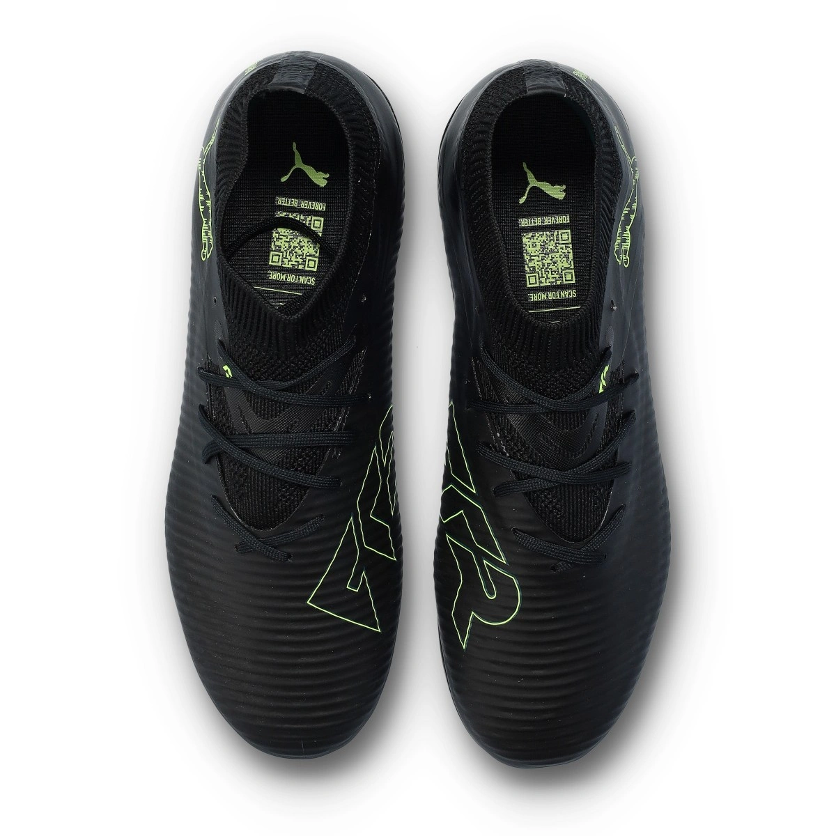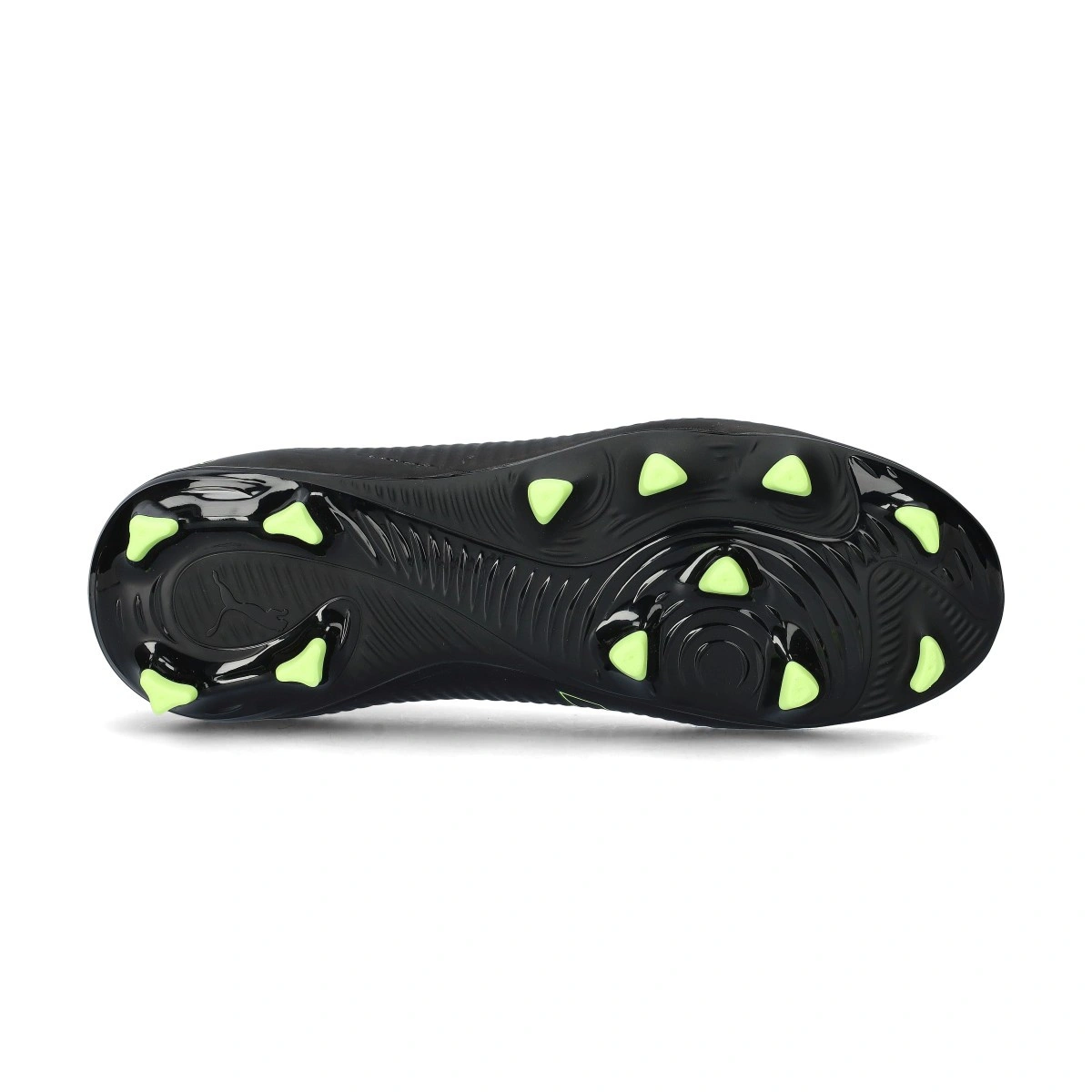 Chaussure de football Puma Future 8 Pro FG/AG pour enfant. Chaussures synthétiques à utiliser sur les terrains à gazon artificiel et naturel. Chaussures pour joueurs offensifs en couleur Black-Fizzy Light-Green Terrain.