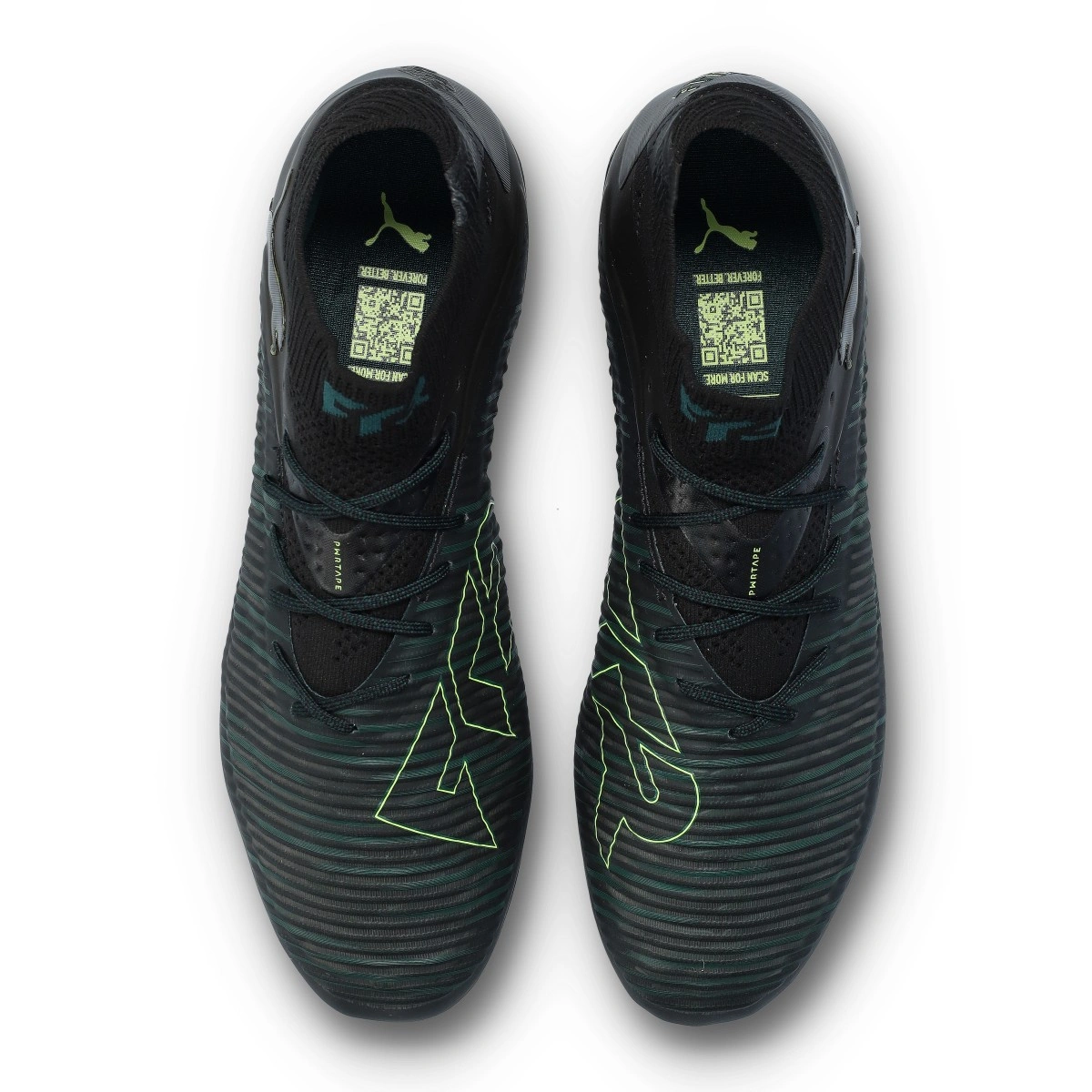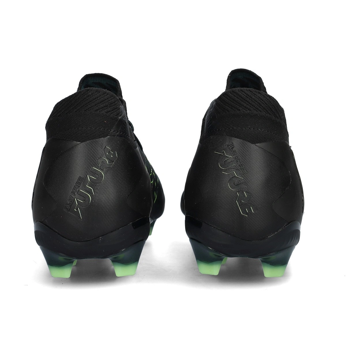 Chaussures de football Puma Future 8 Ultimate FG. Chaussures en fil, conçues pour une utilisation sur terrains en gazon naturel. Modèle haut de gamme en coloris Black-Fizzy Light-Green Terrain.