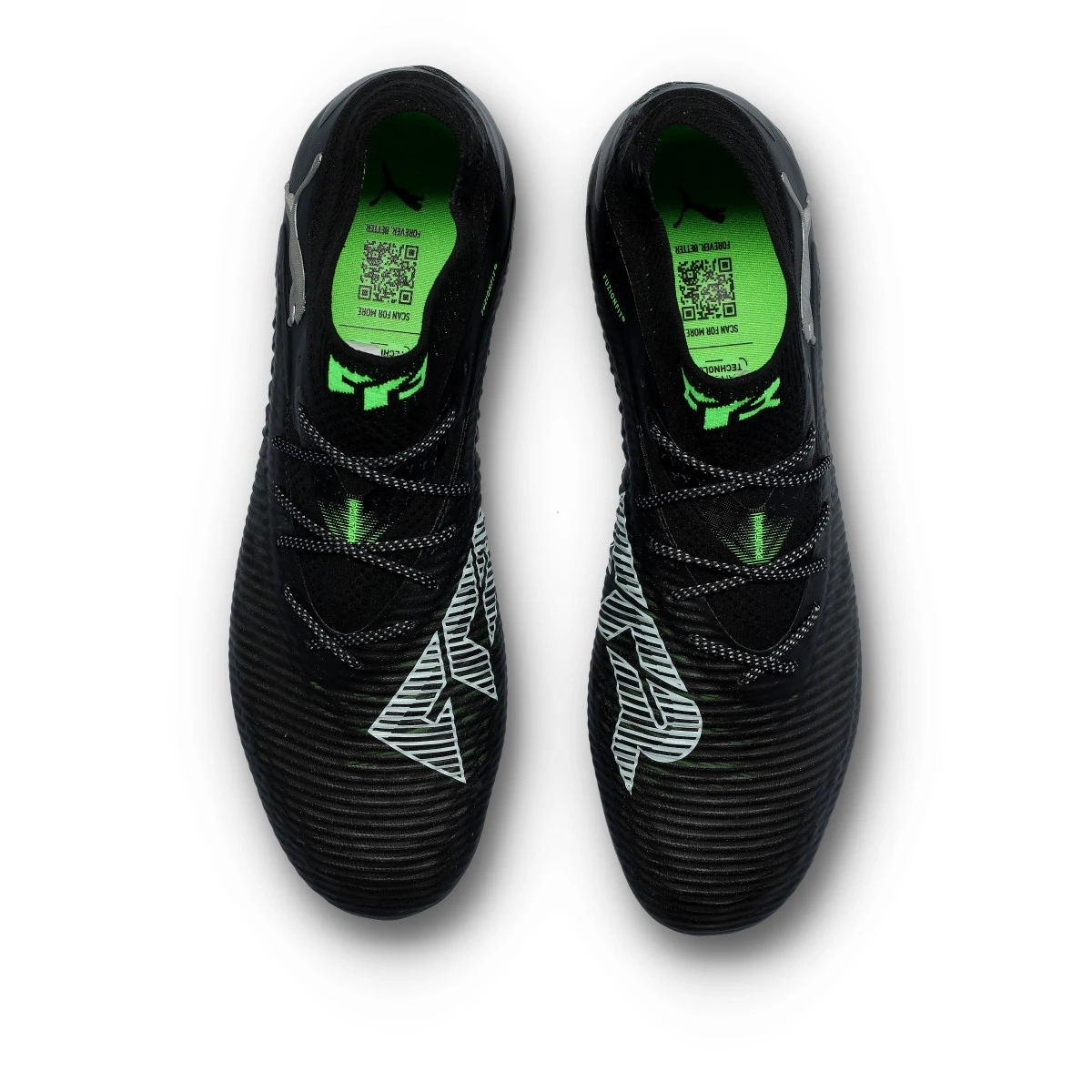 Chaussures de football Puma Future 8 Ultimate FG. Chaussures filetées, à utiliser sur des terrains en gazon naturel sec. Chaussures haut de gamme en Black-Silver-Fluo Green.