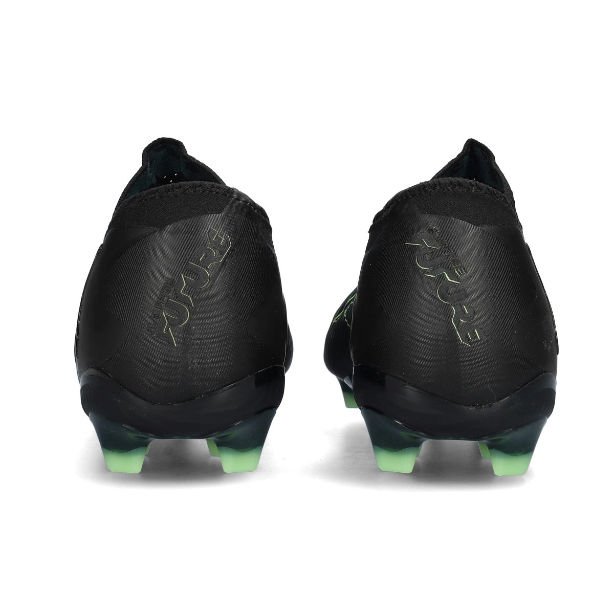 Chaussures de football Puma Future 8 Ultimate FG. Chaussures en fil, conçues pour une utilisation sur terrains en herbe naturelle sèche. Modèle haut de gamme en coloris Black-Fizzy Light-Green Terrain.