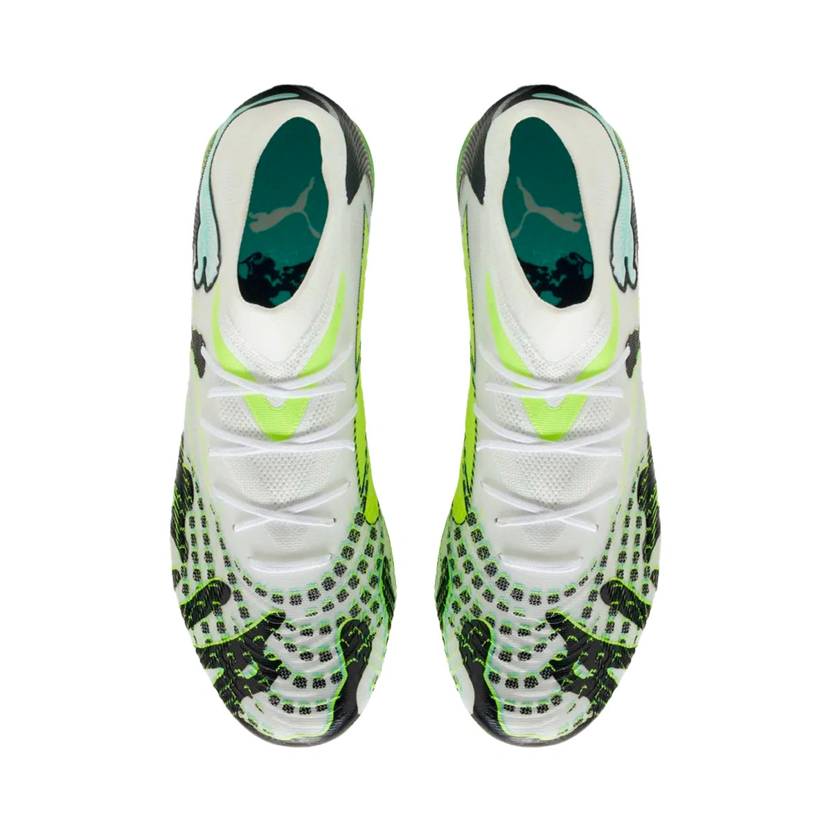 Chaussure de football Puma Future 9 Match Creativity FG/AG pour adultes. Chaussures synthétiques pour terrains en gazon artificiel et gazon naturel. Chaussures d'entrée de gamme en couleur Mint Jelly-Lux Lime-Puma White-Puma Black.