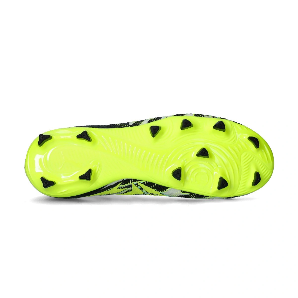 Chaussure de football Puma Future 9 Match Creativity FG/AG pour enfant. Chaussures synthétiques pour terrains en gazon artificiel et gazon naturel. Chaussures d'entrée de gamme en couleur Mint Jelly-Lux Lime-Puma White-Puma Black.