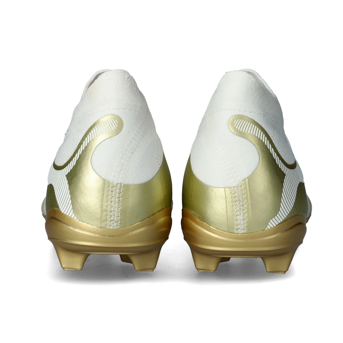 Chaussures de football Puma Future 9 Pro FG/AG. Chaussures de football synthétiques pour terrains en gazon naturel et gazon artificiel. Pour joueurs offensifs en coloris White-Metallic Gold-Black.