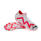 Chaussures de football Puma Future Ultimate MG pour adultes. Chaussures de fil, à utiliser sur les terrains en gazon naturel, gazon artificiel de toute génération, tapis ou terre. Chaussures haut de gamme de couleur White-Black-Fire-Orchid, pour joueurs confirmés.