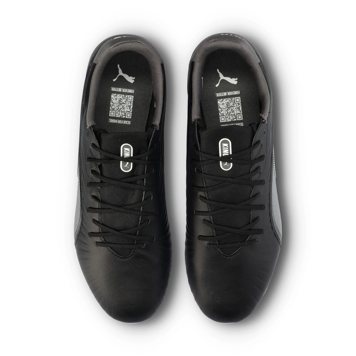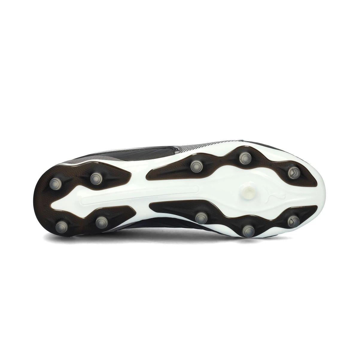 Chaussures Puma King Match FG/AG à utiliser sur les terrains en gazon artificiel et en moquette. Chaussures de la gamme de base en Black-White-Cool Dark Gray.