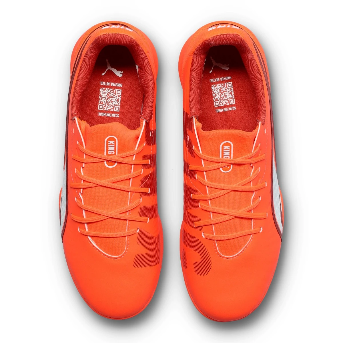 Chaussures de football Puma King Match Turf pour adultes. Chaussures synthétiques à utiliser sur les terrains en gazon artificiel et en moquette. Chaussures de milieu de gamme de couleur Glowing Red-White-Red Fire.
