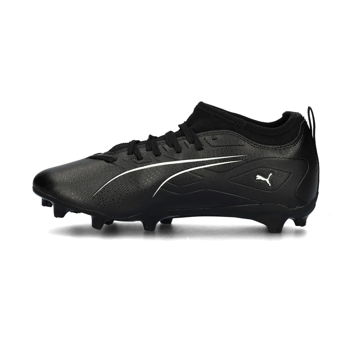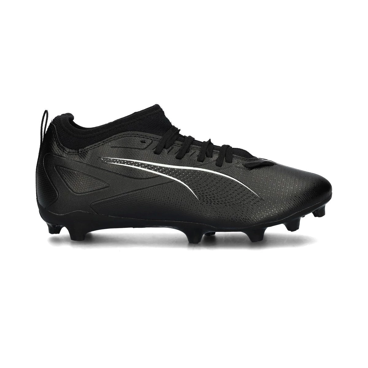 Chaussures de football Puma Ultra 5 Match FG/AG pour enfant. Chaussures synthétiques à utiliser sur les terrains en gazon artificiel et en gazon naturel. Chaussures bas de gamme de Black-White.