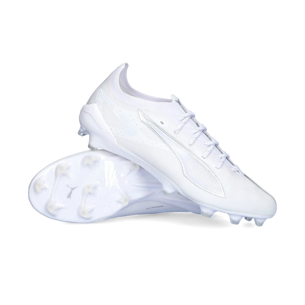 Chaussures de football Puma Ultra 5 Ultimate FG. Chaussures en microfibre pour une utilisation sur des terrains en gazon naturel. Chaussures haut de gamme en White- White.