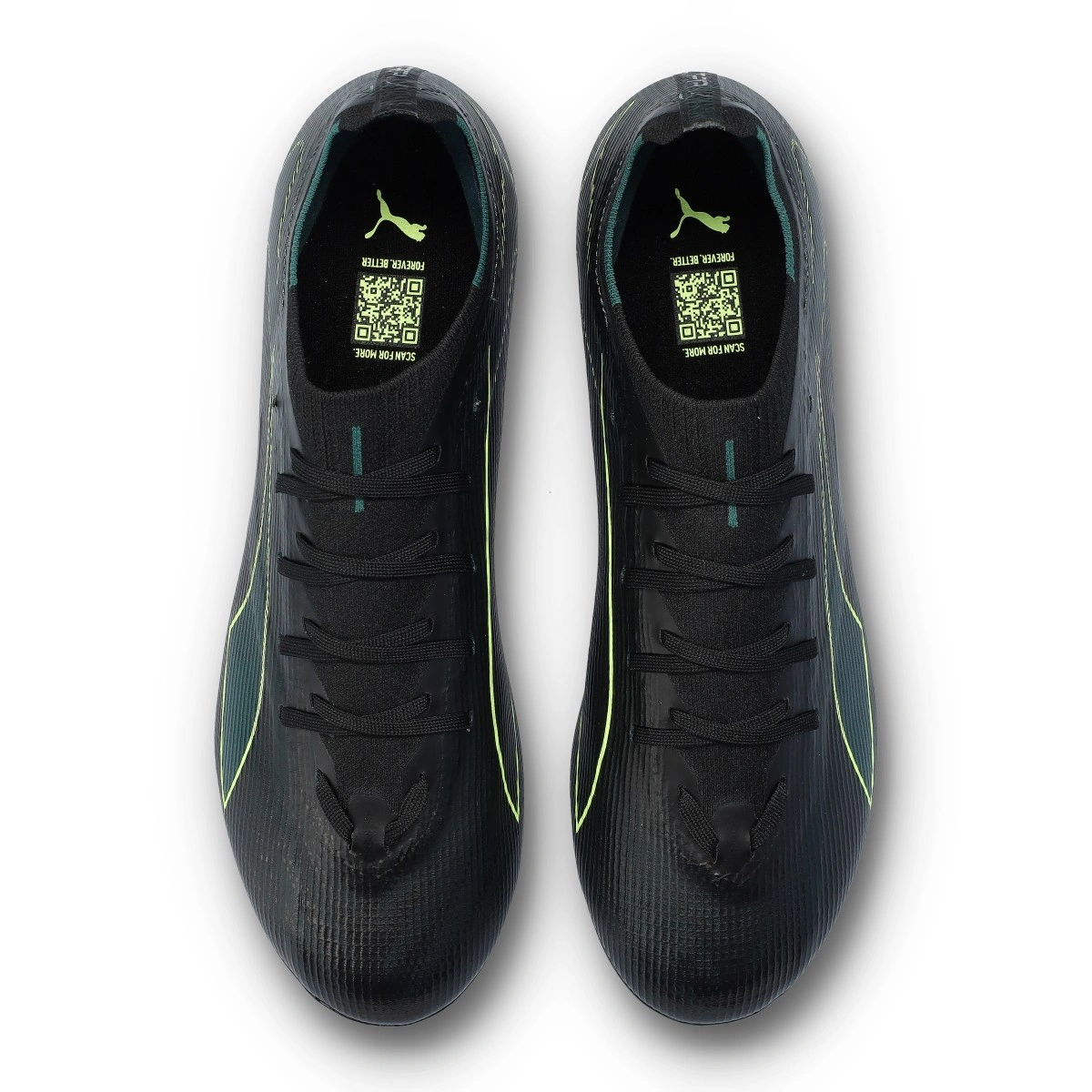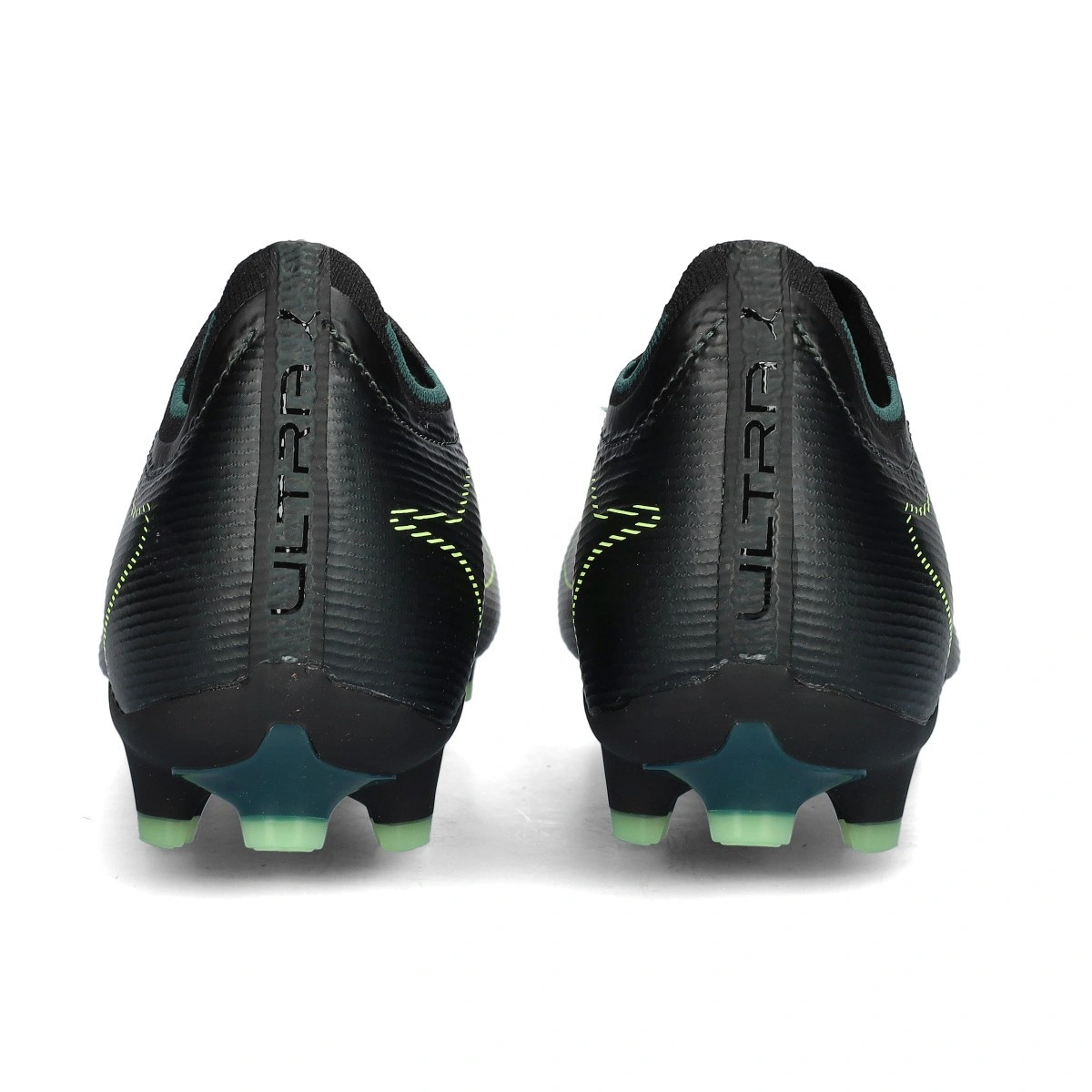 Chaussure de football Puma Ultra 6 Match FG/AG. Chaussures synthétiques à utiliser sur les terrains en gazon artificiel et naturel. Chaussures bas de gamme en coloris Black-Fizzy Light-Green Terrain.