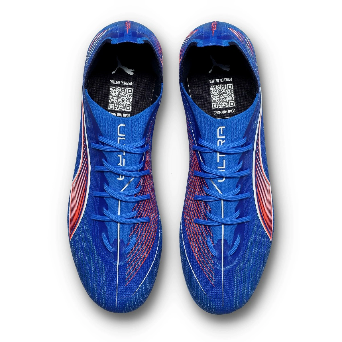 Chaussures de football Puma Ultra 6 Pro MG pour adultes. Chaussures en microfibre conçues pour jouer sur gazon synthétique de première génération. Modèle de gamme moyenne en coloris Ultra Blue – White – Glowing Red.
