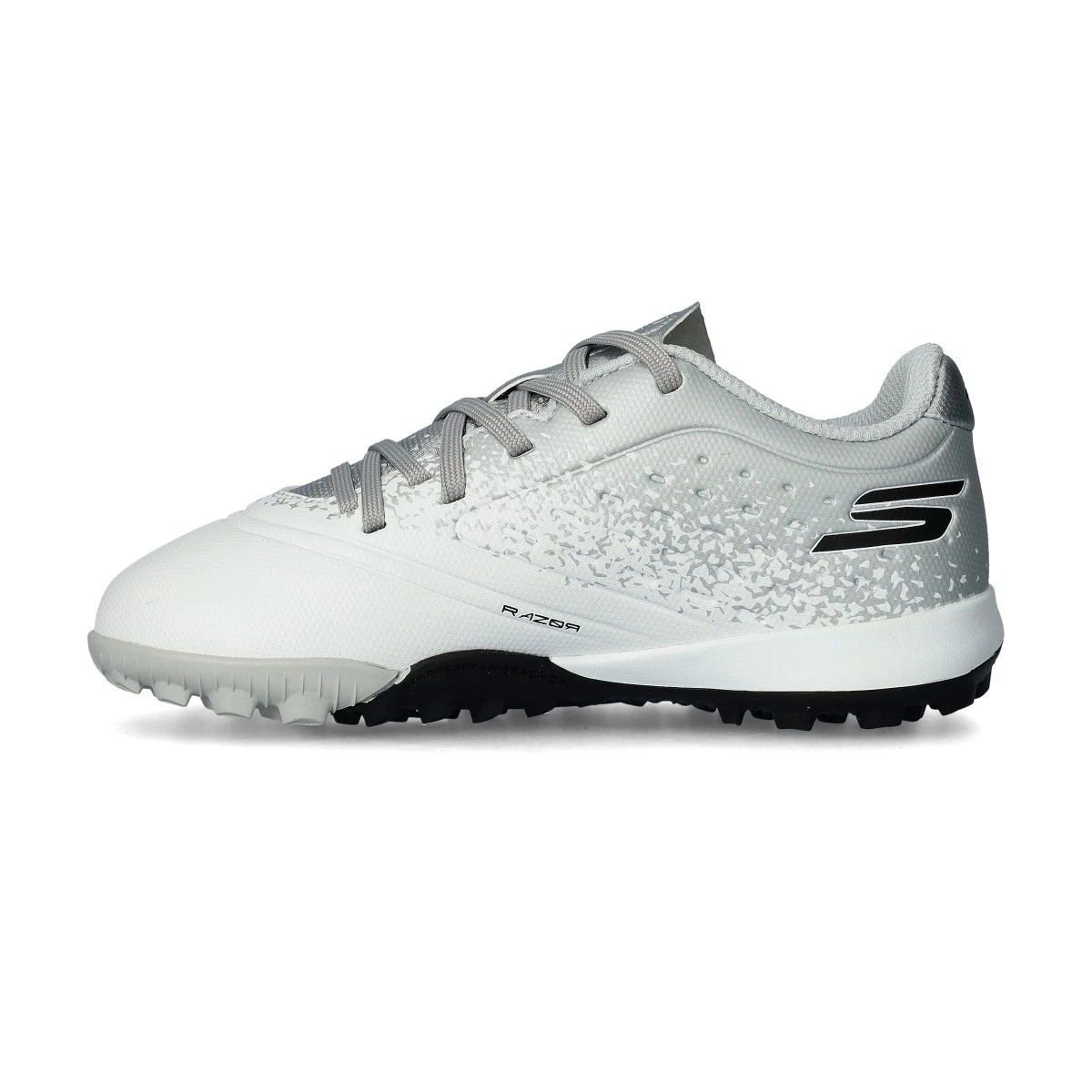 Soccer Razor 1.5 Chaussure de gazon pour enfants. Pour les joueurs qui jouent sur tapis.  Chaussures de couleur White Silver.