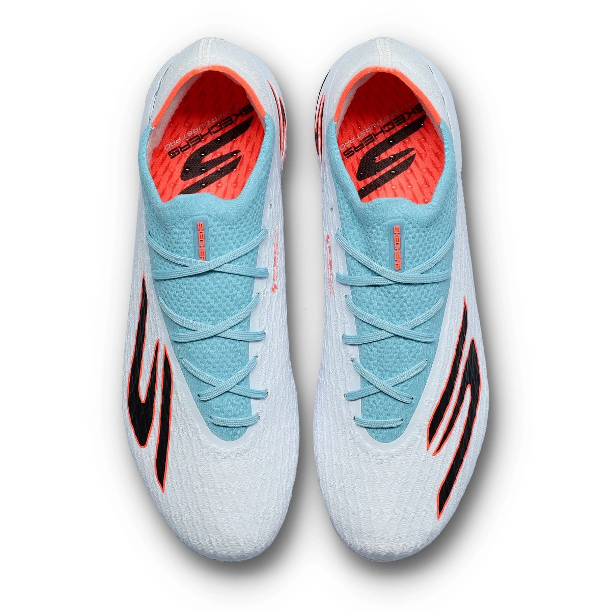 Chaussure Skechers SKX 2 Elite FG en coloris White-Turquoise. Chaussure synthétique pour terrains en gazon naturel.