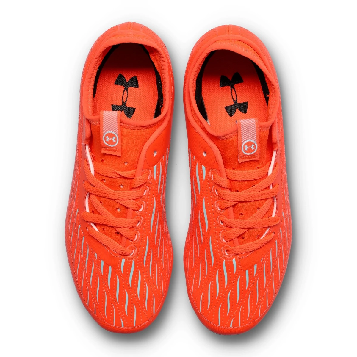 Chaussures de football Under Amour Magnetico Select 4 FG pour enfant. Chaussures basse de gamme en cuir synthétique pour les terrains en gazon naturel.