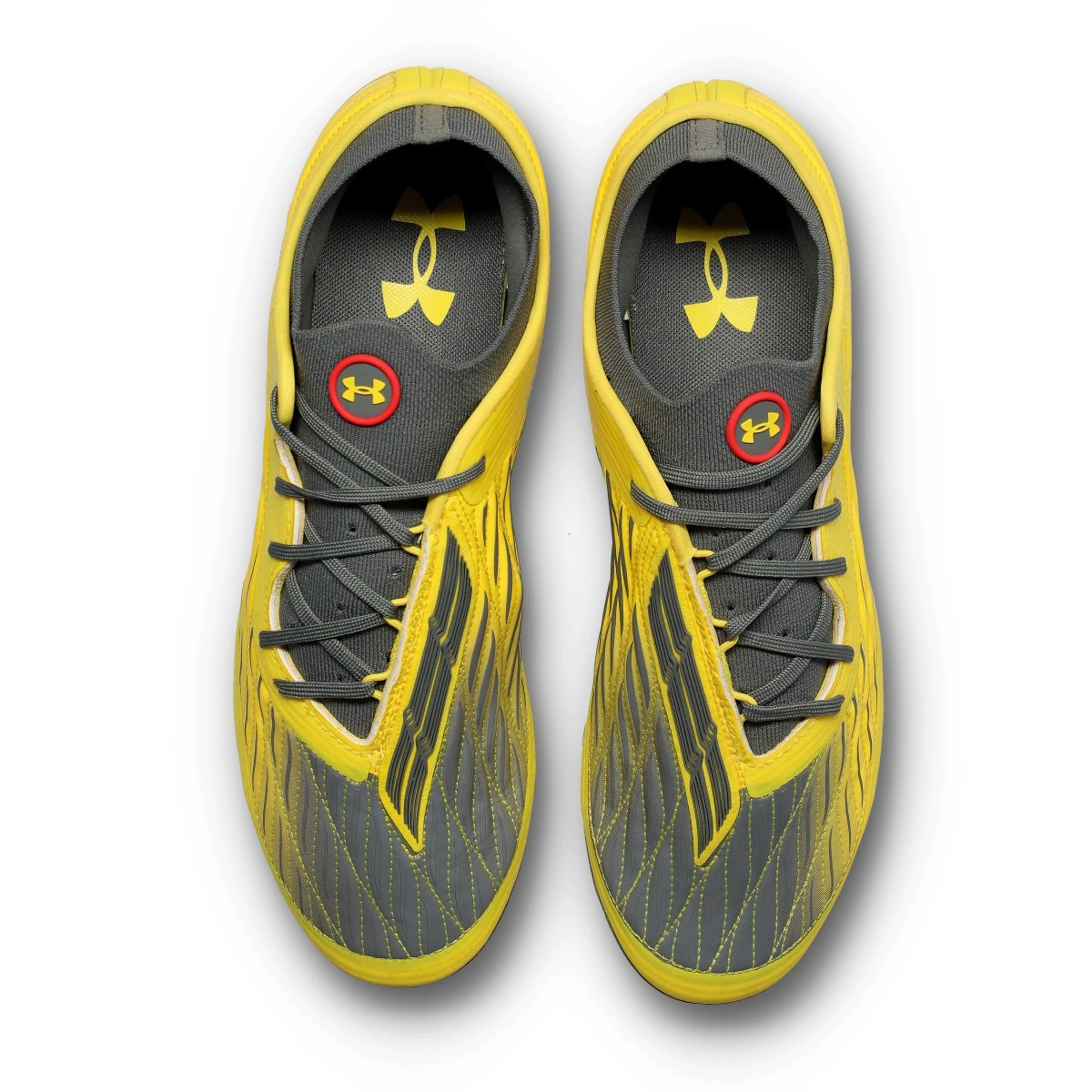 Tige avec technologie UA Clone pour un ajustement personnalisé quelle que soit la taille. La couche intérieure en matériau souple et authentique se moule au pied pour un ajustement semblable à celui d'un gant. Impression 3D pour un meilleur toucher et un meilleur contrôle, et silicone dans les zones de contact pour un meilleur coup de pied.