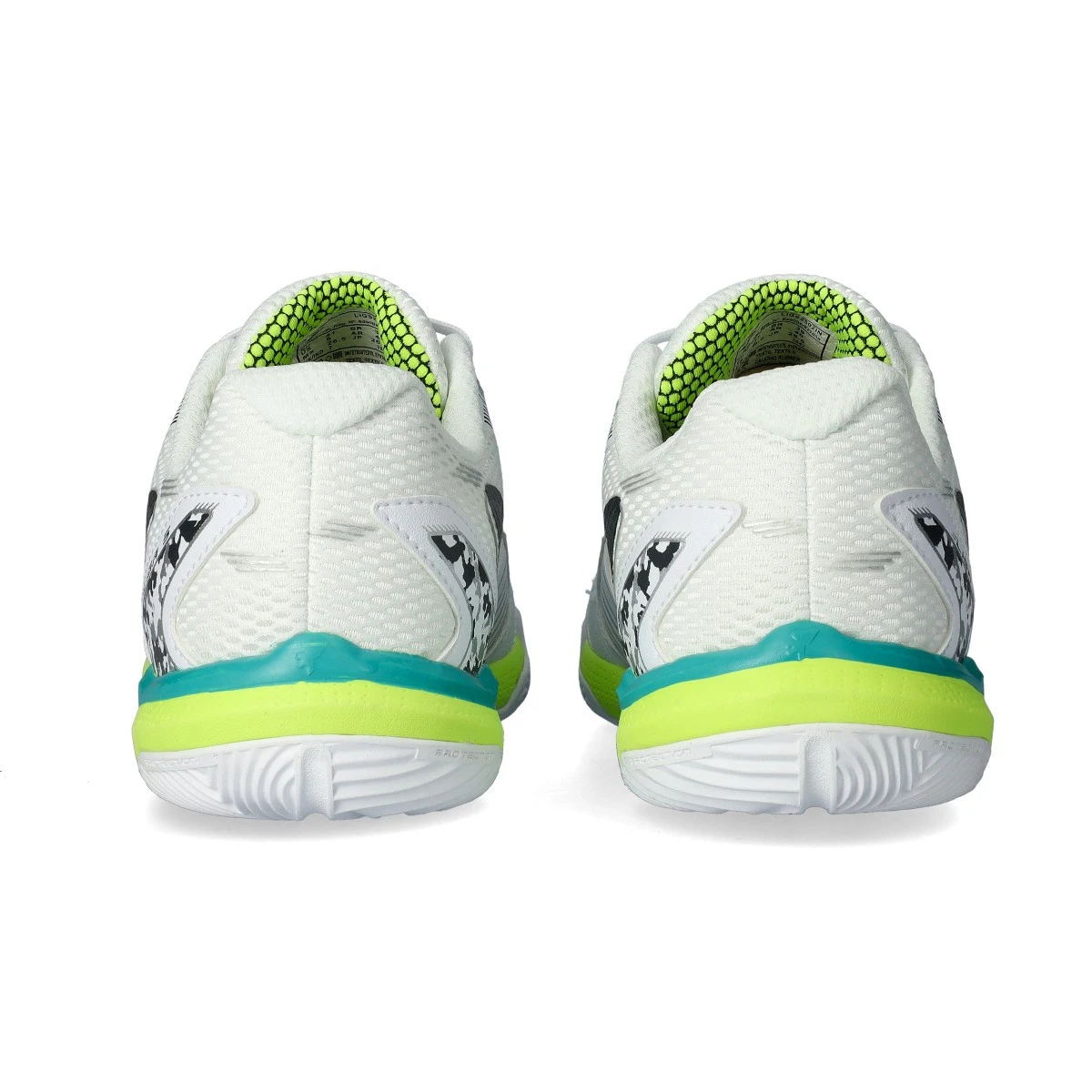 Fabriquée en caoutchouc sectionné à deux densités en fonction de l'usure subie par chaque partie de la semelle. Nouveau design avec double Système Pulsor, insérant 2 pièces de gel, une au niveau du talon pour absorber les impacts et une autre dans la partie médiane pour améliorer la transition de la foulée.