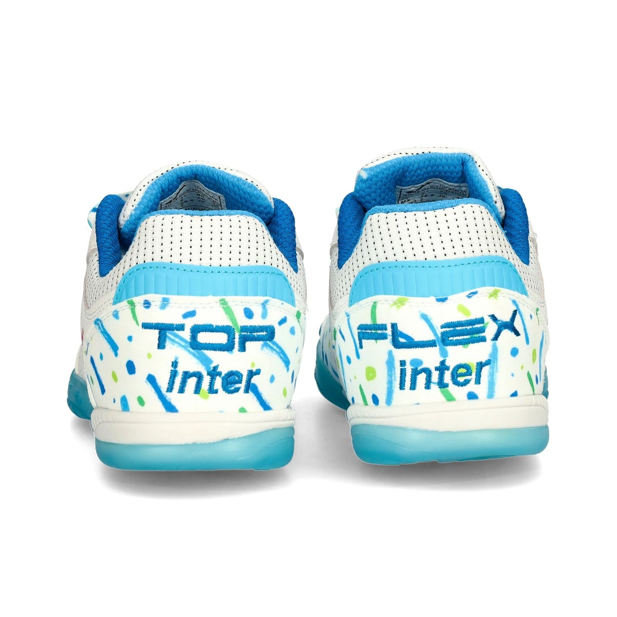 Chaussures de futsal Joma Top Flex Édition Inter Movistar. Ce sont les chaussures les plus emblématiques du catalogue de futsal de Joma. Un modèle léger et polyvalent, adapté aussi bien à l'entraînement qu'à la compétition. Testé par des footballeurs professionnels.