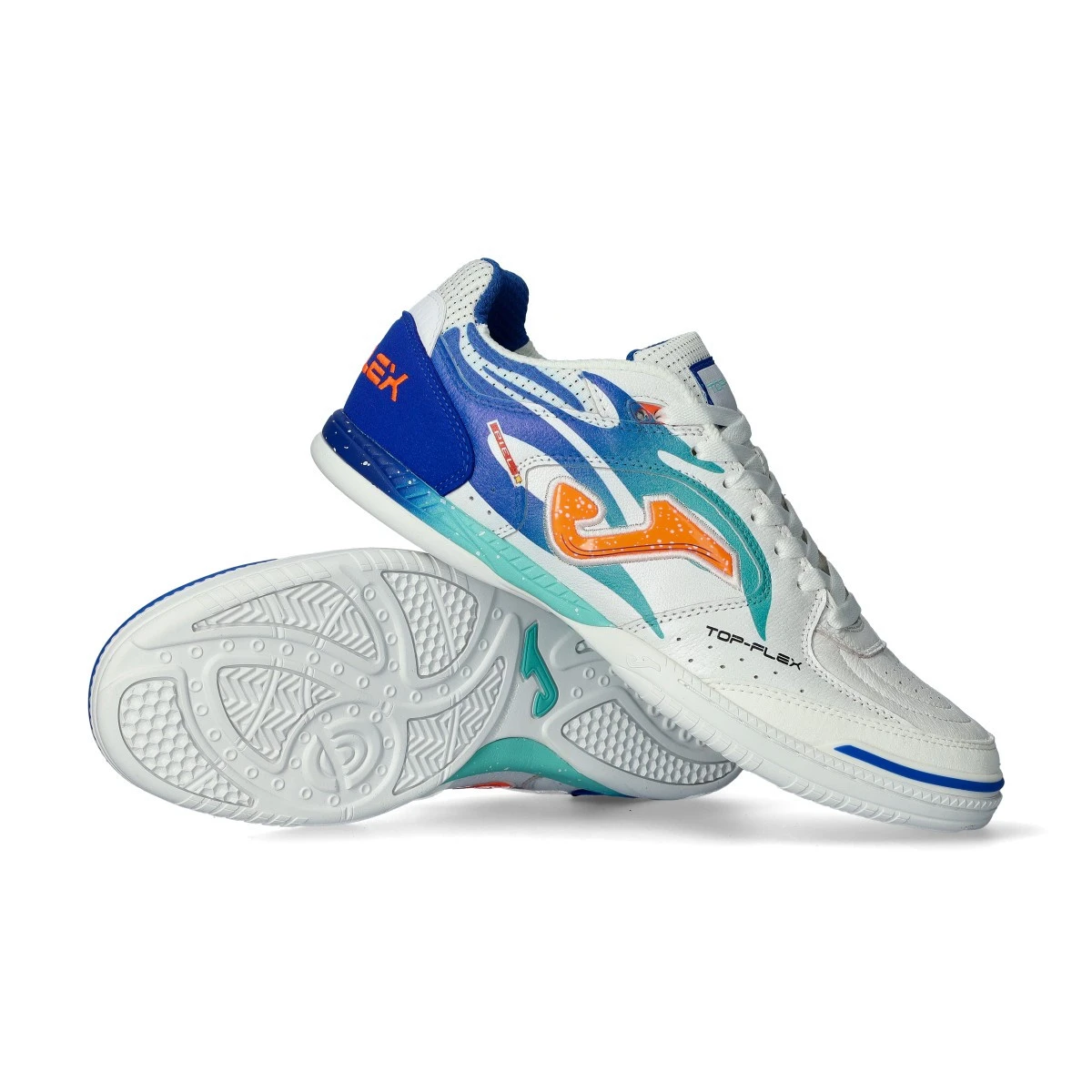Chaussures de futsal Joma Top Flex. Ce sont les chaussures les plus emblématiques du catalogue futsal de Joma. Un modèle léger et polyvalent, adapté aussi bien à l'entraînement qu'à la compétition, testé par des footballeurs professionnels. Une édition exclusive disponible uniquement chez Fútbol Emotion.
