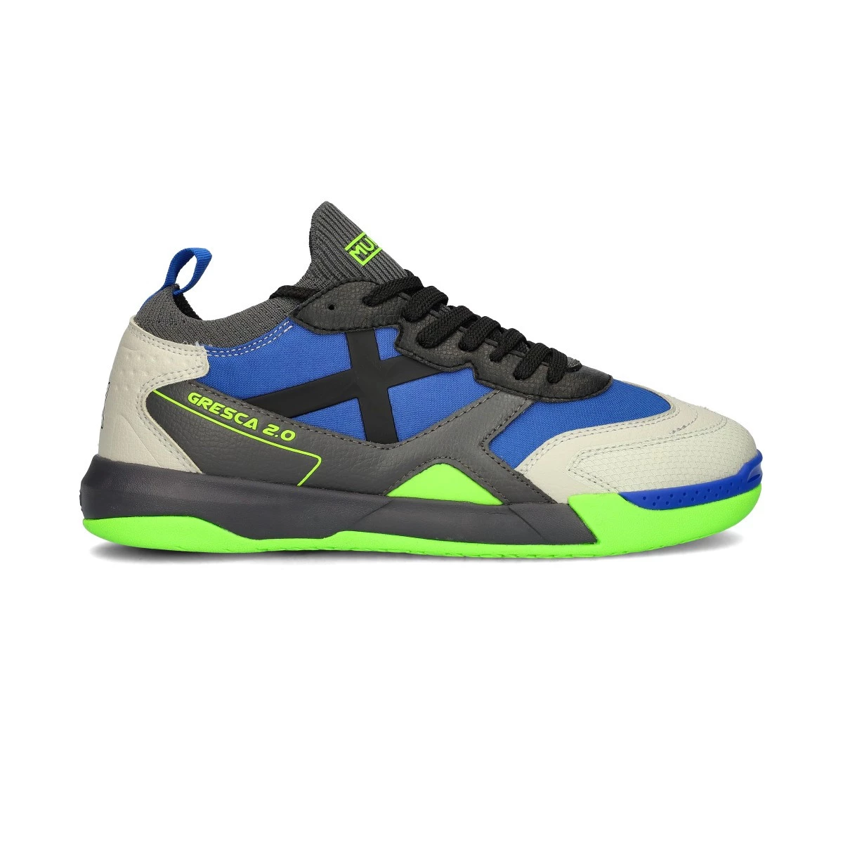 Chaussure de futsal Gresca 2.0. Ces chaussures de futsal Munich Gresca 2.0 sont conçues pour jouer sur des surfaces intérieures ou en salle. La tige est aérée et la semelle extérieure est antidérapante pour que votre pied reste en contact avec le terrain. Appréciez de montrer vos meilleures compétences.