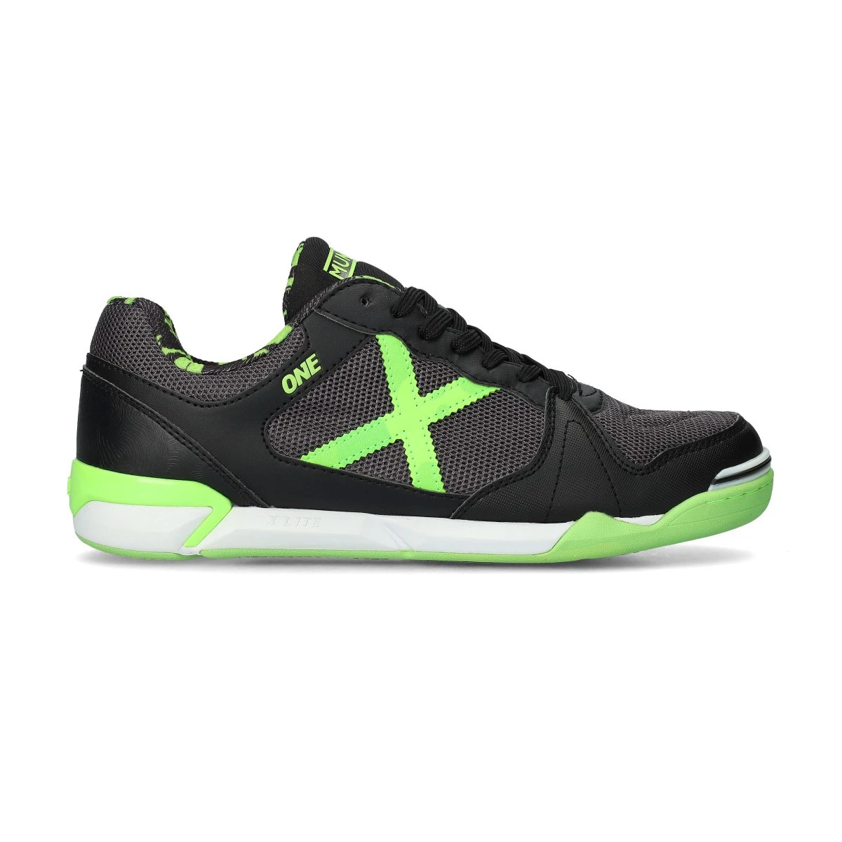 L'One Indoor est une chaussure de futsal composée d'une base en maille et de renforts synthétiques. Elle incorpore un renfort TPU dans l'embout pour plus de solidité, de force et de fermeté dans la frappe.