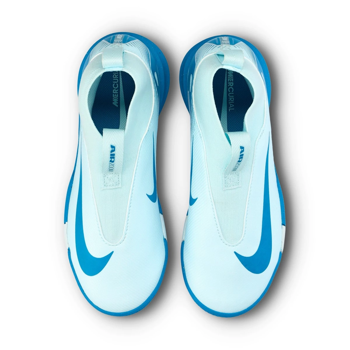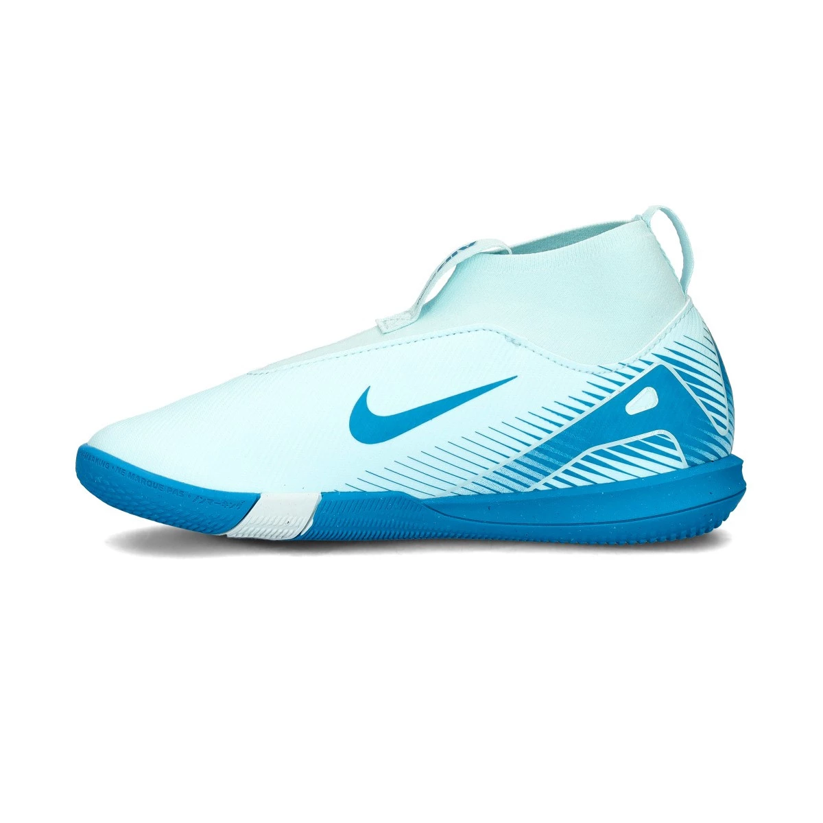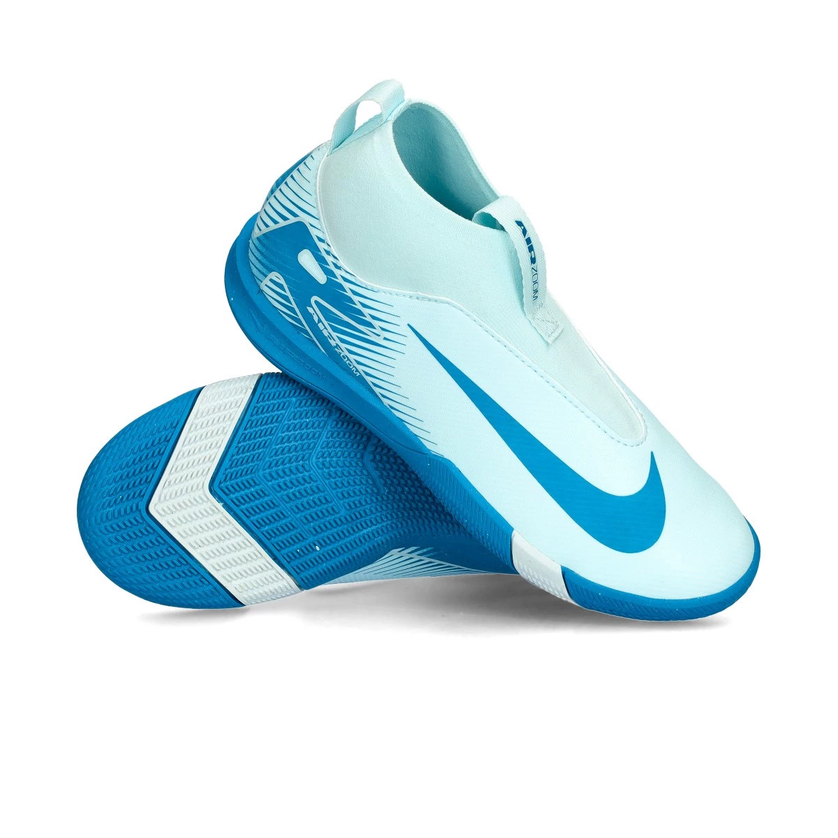 Chaussure de futsal Nike Air Zoom Mercurial Superfly16 Academy IC pour enfant. Chaussure synthétique à utiliser à l'intérieur. Chaussures basse de gamme en coloris Glacier Blue-Blue Orbit.