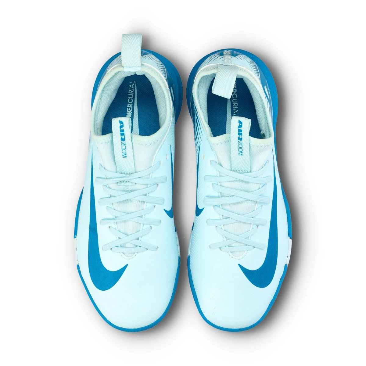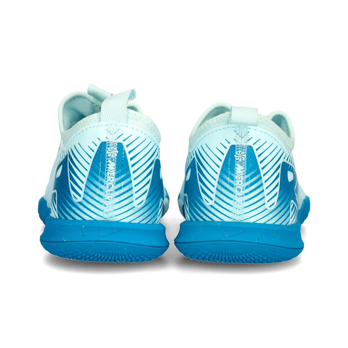 Chaussure de futsal Nike Mercurial Vapor 16 Academy IC pour enfant. Tige synthétique pour une utilisation en intérieur. Chaussure basse en Glacier Blue-Blue Orbit.