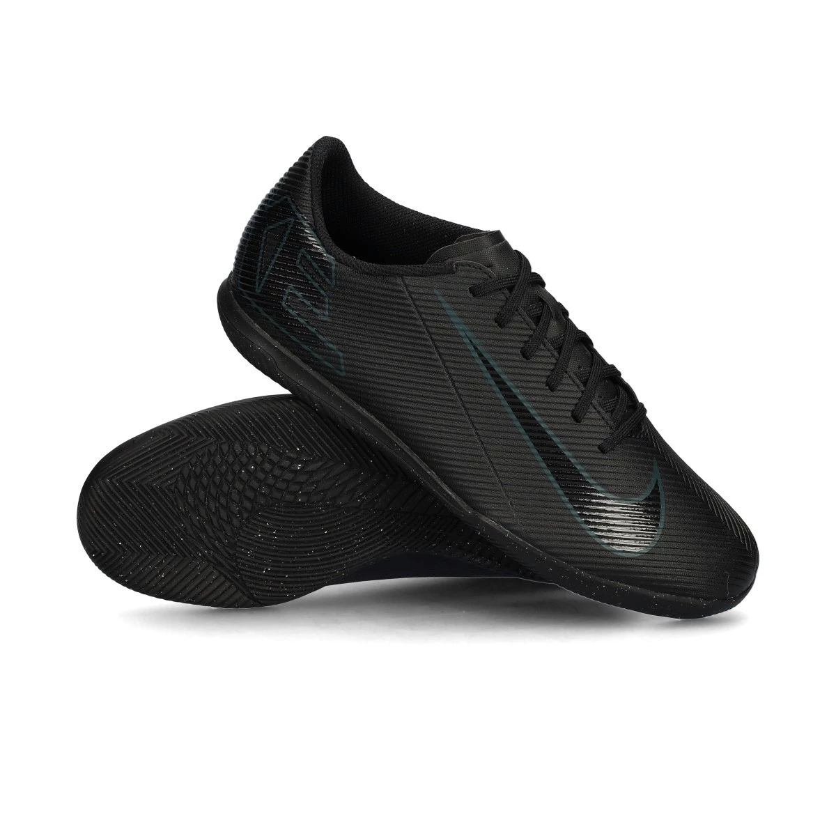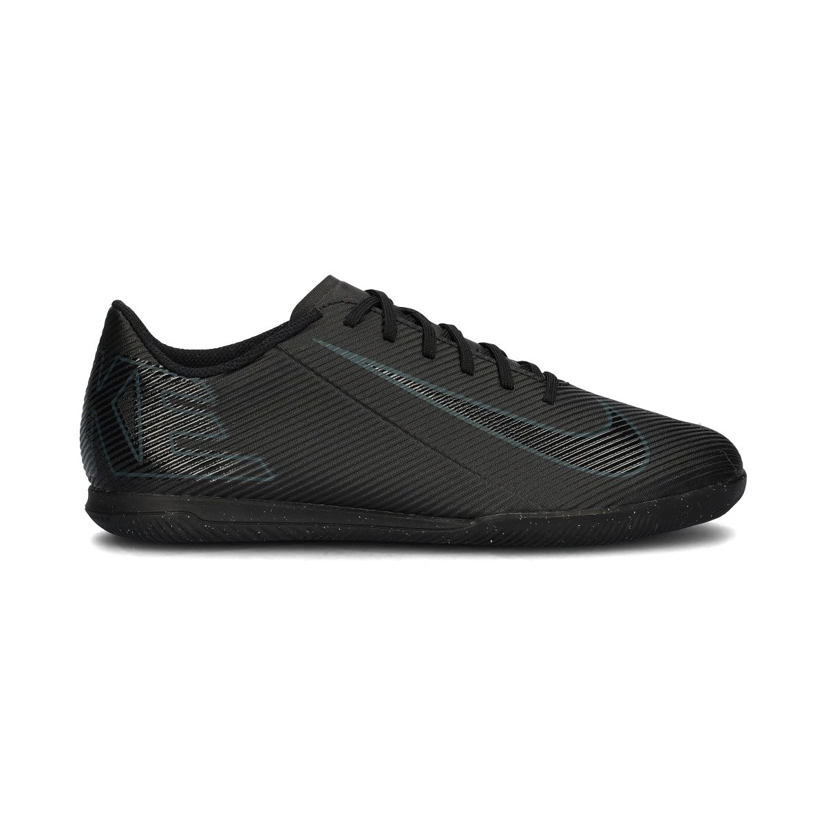 Chaussure de futsal Nike Mercurial Vapor 16 Club IC. Tige synthétique pour une utilisation en intérieur. Chaussure de la gamme de base en Black-Black-Deep Jungle.