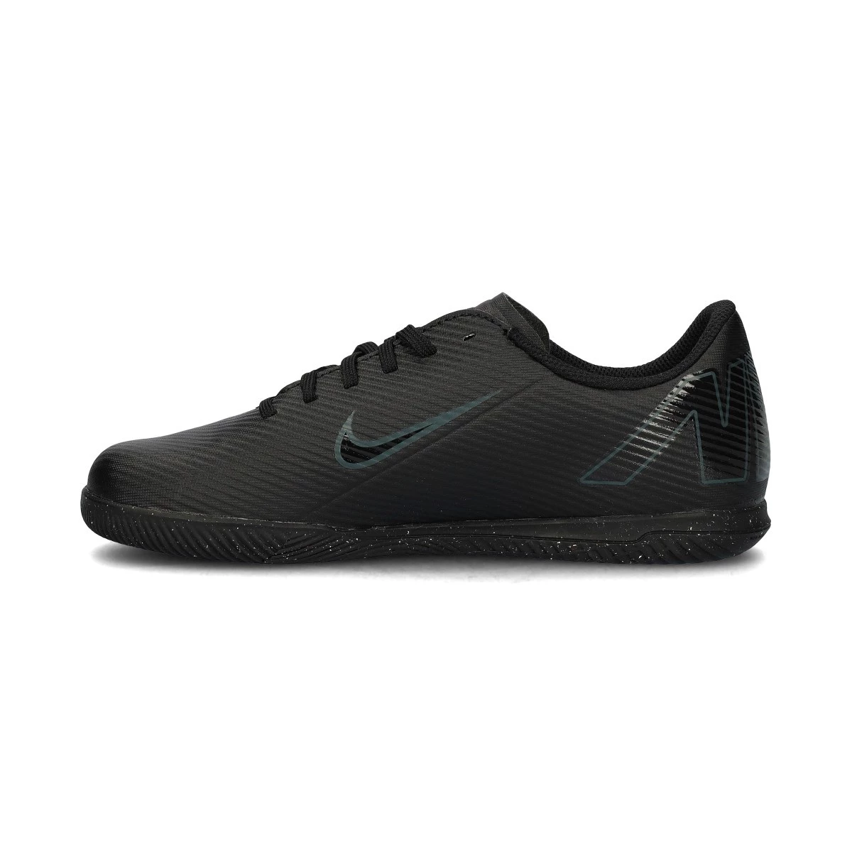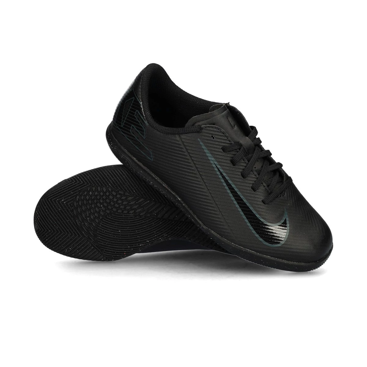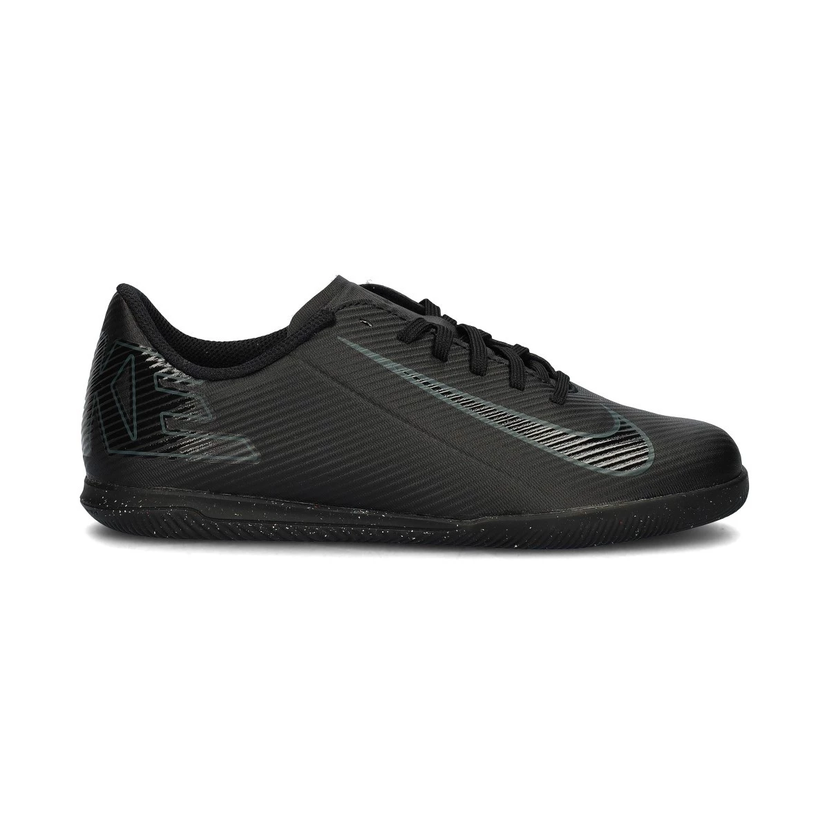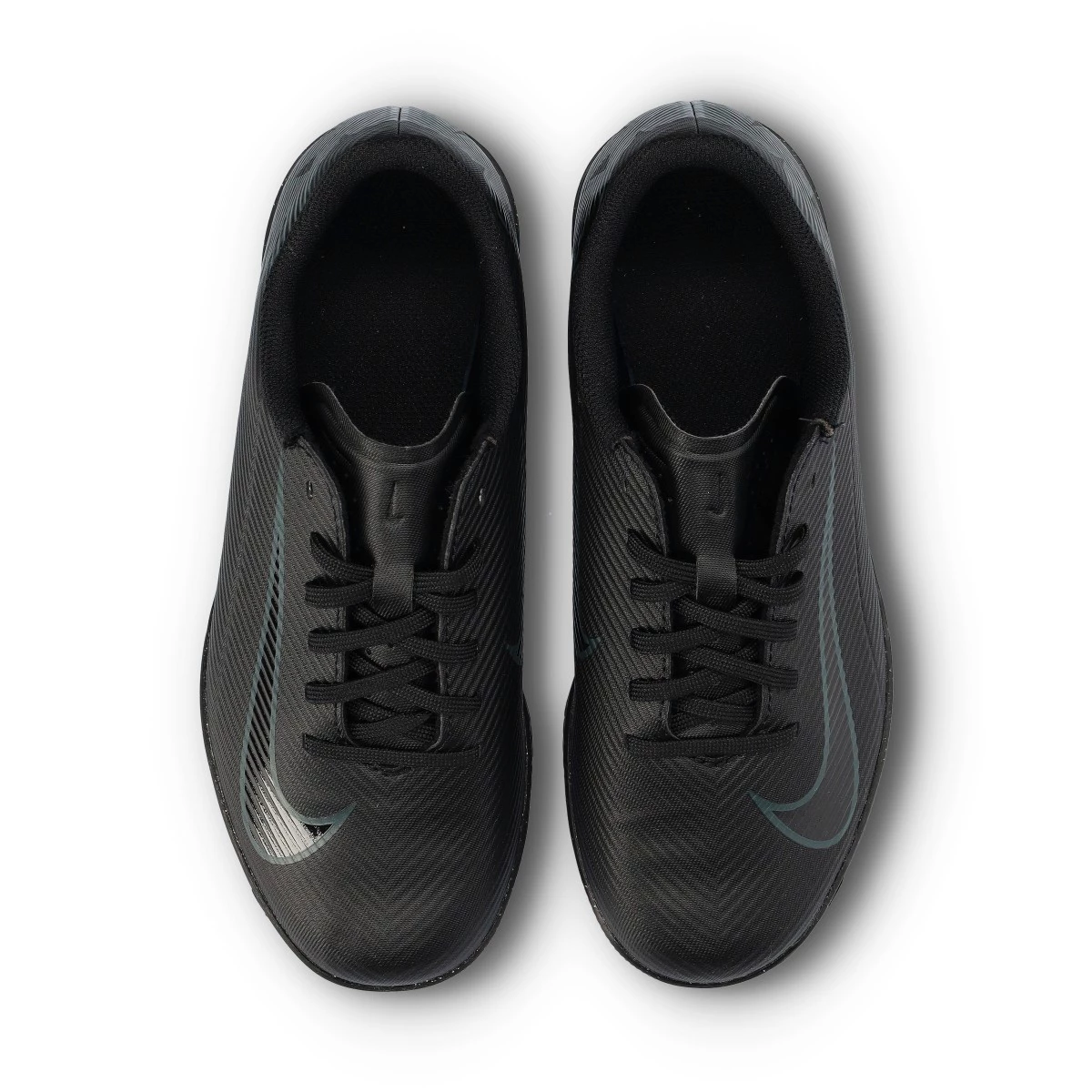 Chaussure de futsal Nike Mercurial Vapor 16 Club IC pour enfant. Tige synthétique pour une utilisation en intérieur. Chaussure de la gamme de base en Black-Black-Deep Jungle.