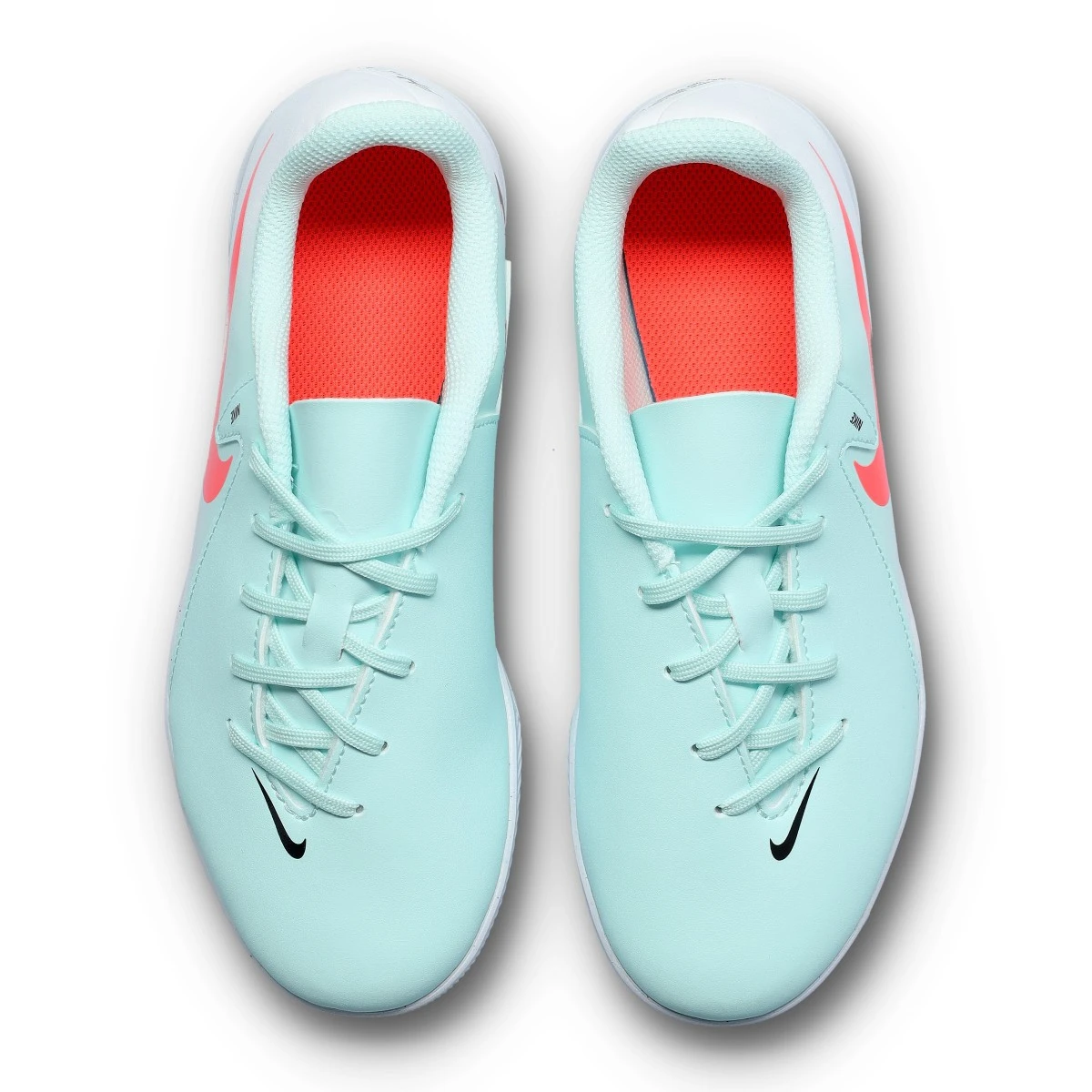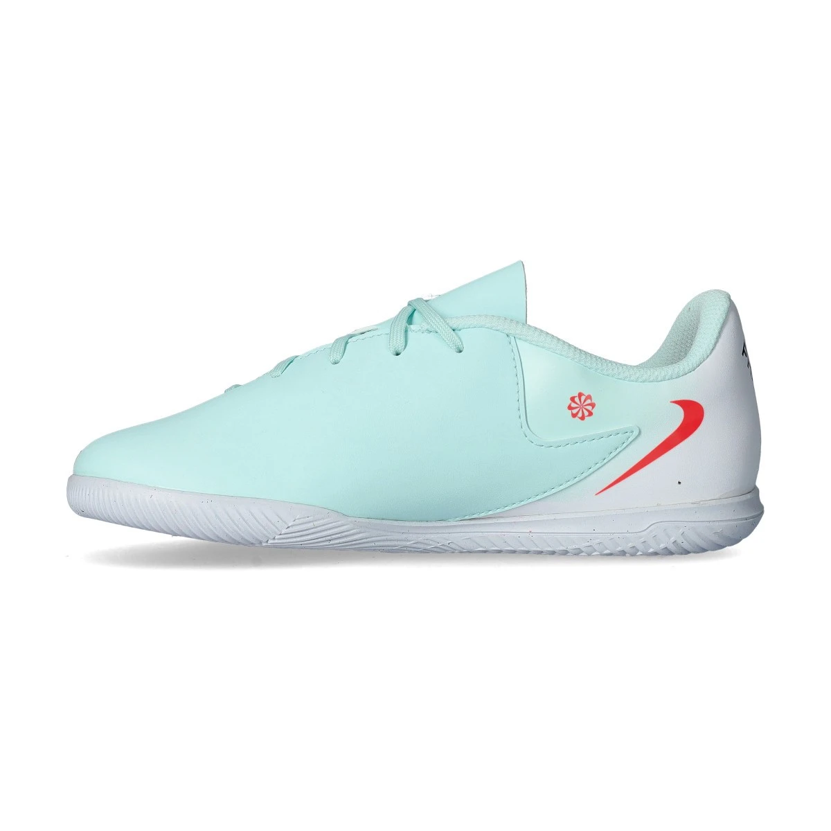Chaussures de futsal Phantom GX II Club IC pour enfants, coloris Mint-Atomic Red-Off Noir. Chaussures pour usage intérieur.