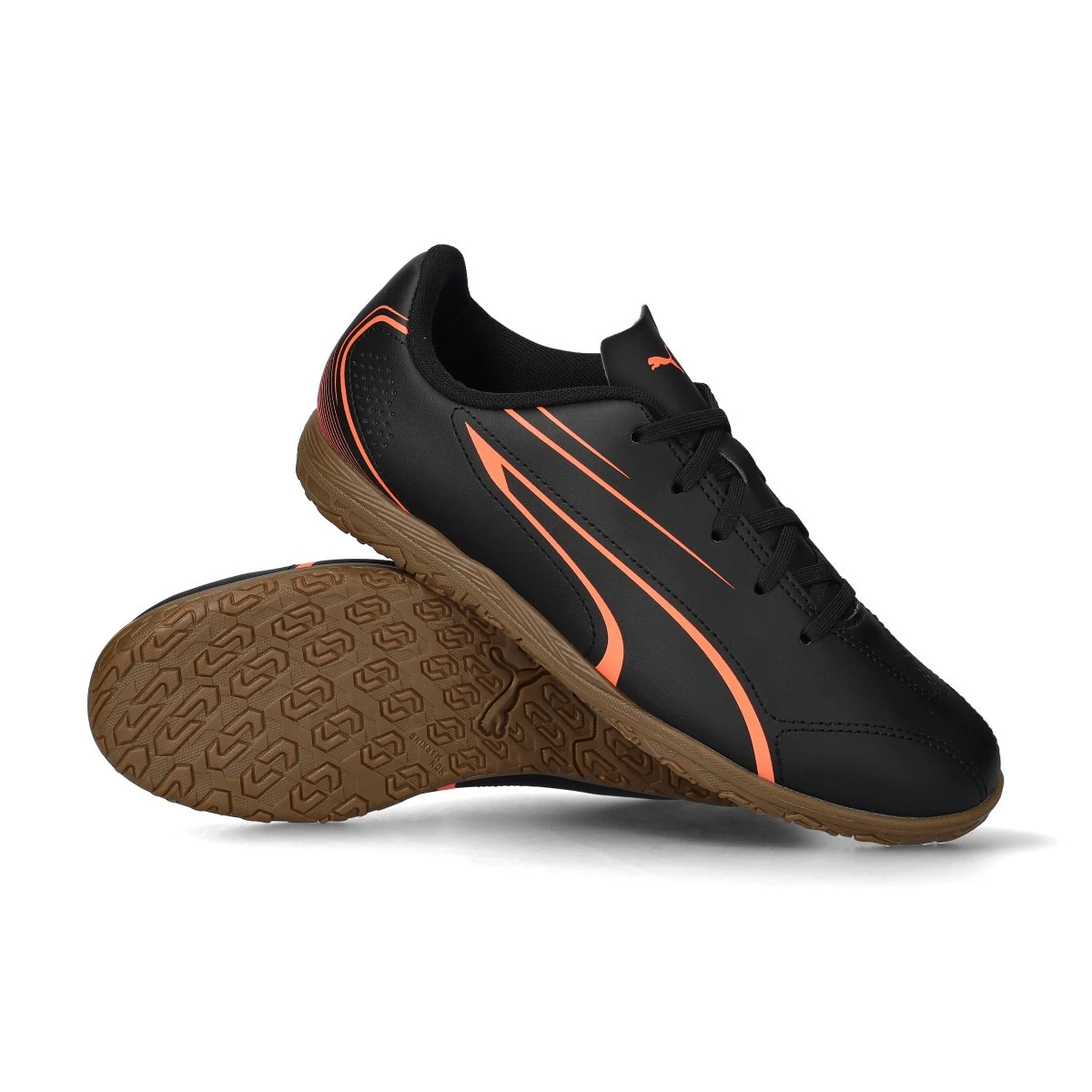 Chaussures de futsal Puma Vitoria IT pour enfant. Modèle d'entrée de gamme pour terrain en moquette, en coloris Black.