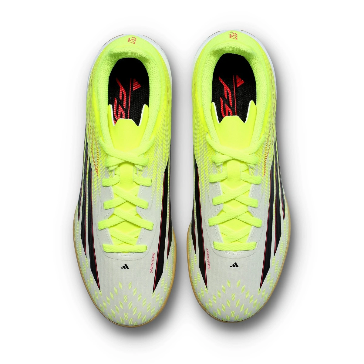Chaussure F50 League IN pour enfant de la marque adidas en couleur Team Solar Yellow-Core Black-Lucid Red.
