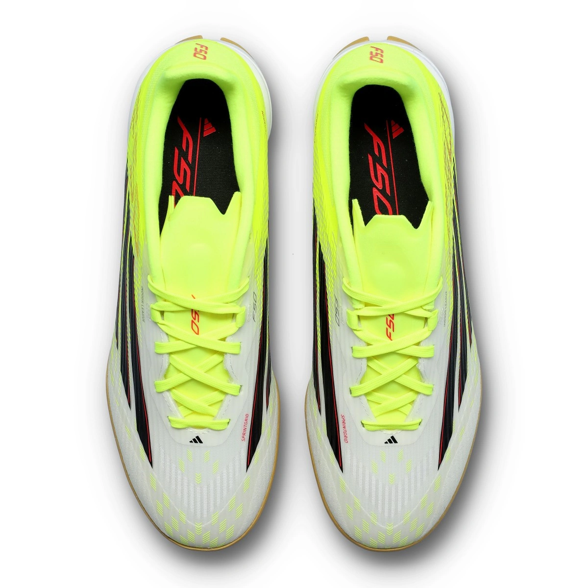 Chaussure F50 League IN de la marque adidas en couleur Team Solar Yellow-Core Black-Lucid Red.
