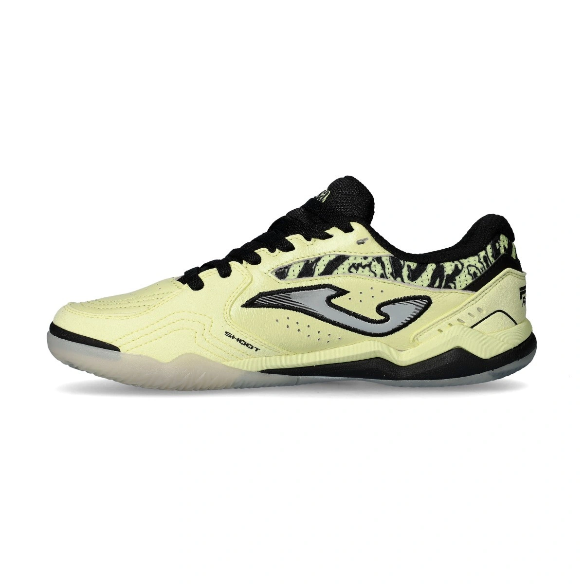 Chaussures de football en salle FS Reactive IN de Joma. Chaussures en cuir blanc-noir recommandées pour les terrains de futsal en salle.
