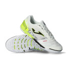 Chaussures de futsal Joma Mundial. Ce modèle de coupe classique se distingue par l'utilisation de cuir dans la tige, ce qui garantit un meilleur contact avec le ballon et une plus grande résistance. Elles sont conçues pour offrir de hautes performances.