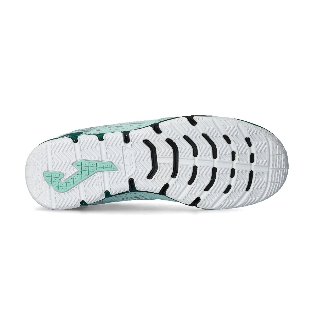 Fabriquée en caoutchouc, elle est divisée en plusieurs lignes de flexion transversales et présente un design à chevrons, ainsi qu'un axe de rotation qui facilite les virages. Comme il s'agit d'une chaussure à profil bas, la sensation de contact avec la balle est maximale.