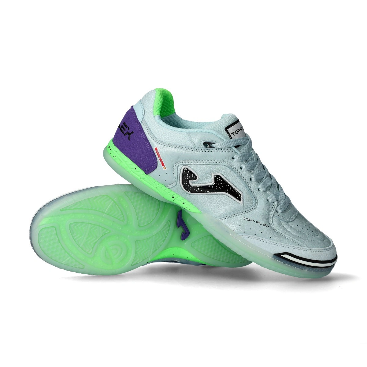 Chaussures de futsal Joma Top Flex. C'est la chaussure la plus emblématique du catalogue Joma futsal. Un modèle léger et polyvalent, adapté à l'entraînement et à la compétition. Testée par des joueurs de football professionnels.