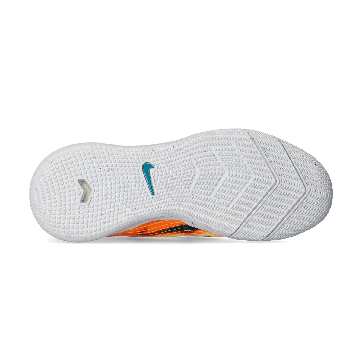 Chaussures de futsal Nike Mercurial Vapor 16 Academy IC pour enfants. Chaussures synthétiques à utiliser sur les terrains intérieurs. Bottes d'entrée de gamme dans le coloris Melon Tint-Neo Turq-Igloo.