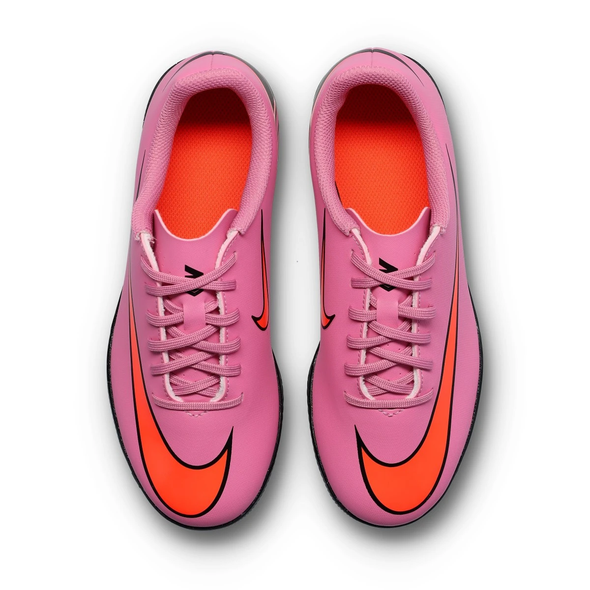 Chaussure de futsal Nike Mercurial Vapor 16 Club IC pour enfants. Tige synthétique pour une utilisation en intérieur. Chaussure d'entrée de gamme en Magic Flamingo-Black-Total Crimson.