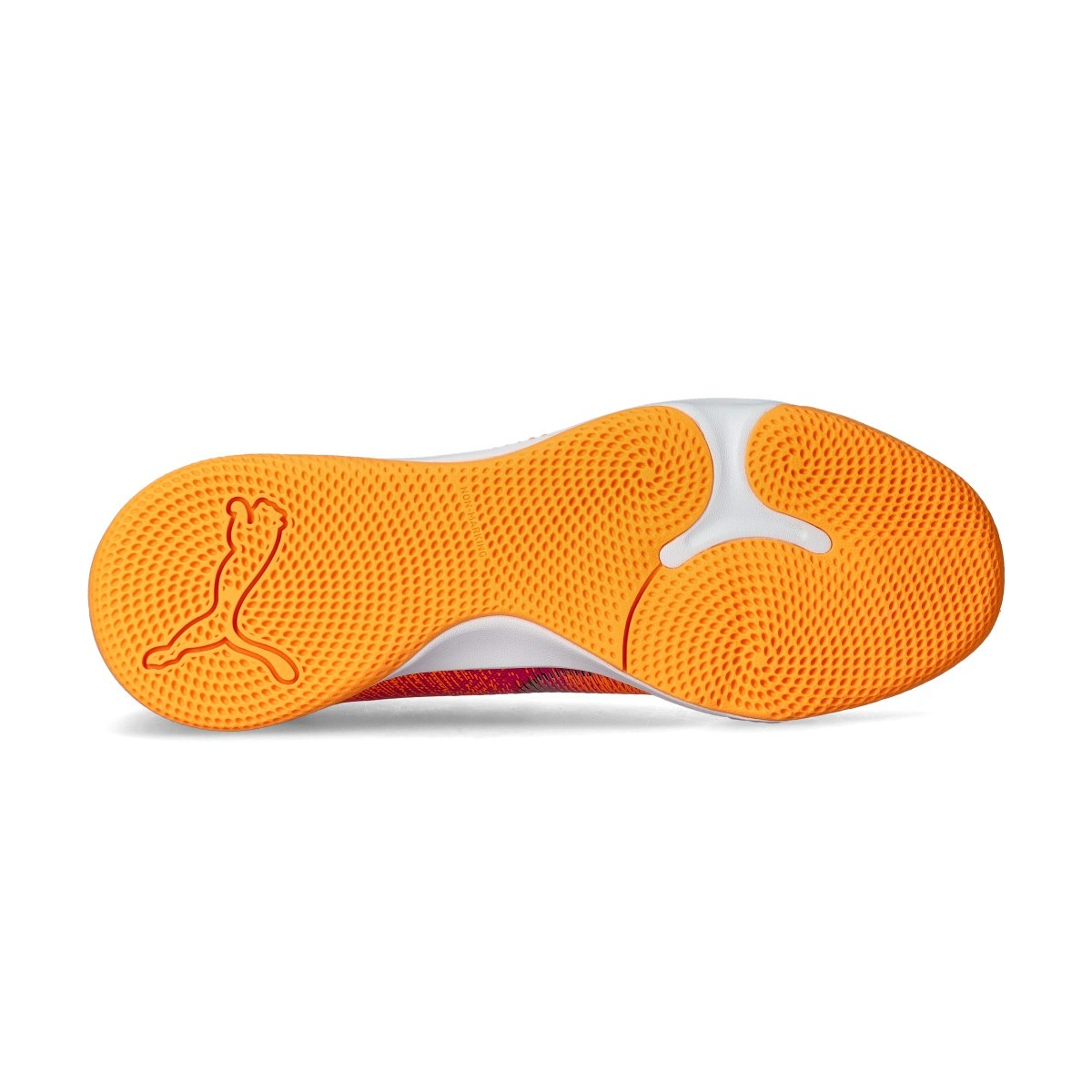 Chaussure de football en salle Puma Future 8 Match IT. Chaussures synthétiques pour une utilisation dans les gymnases. Chaussures de milieu de gamme de couleur Heat Fire-Black-Ravish.