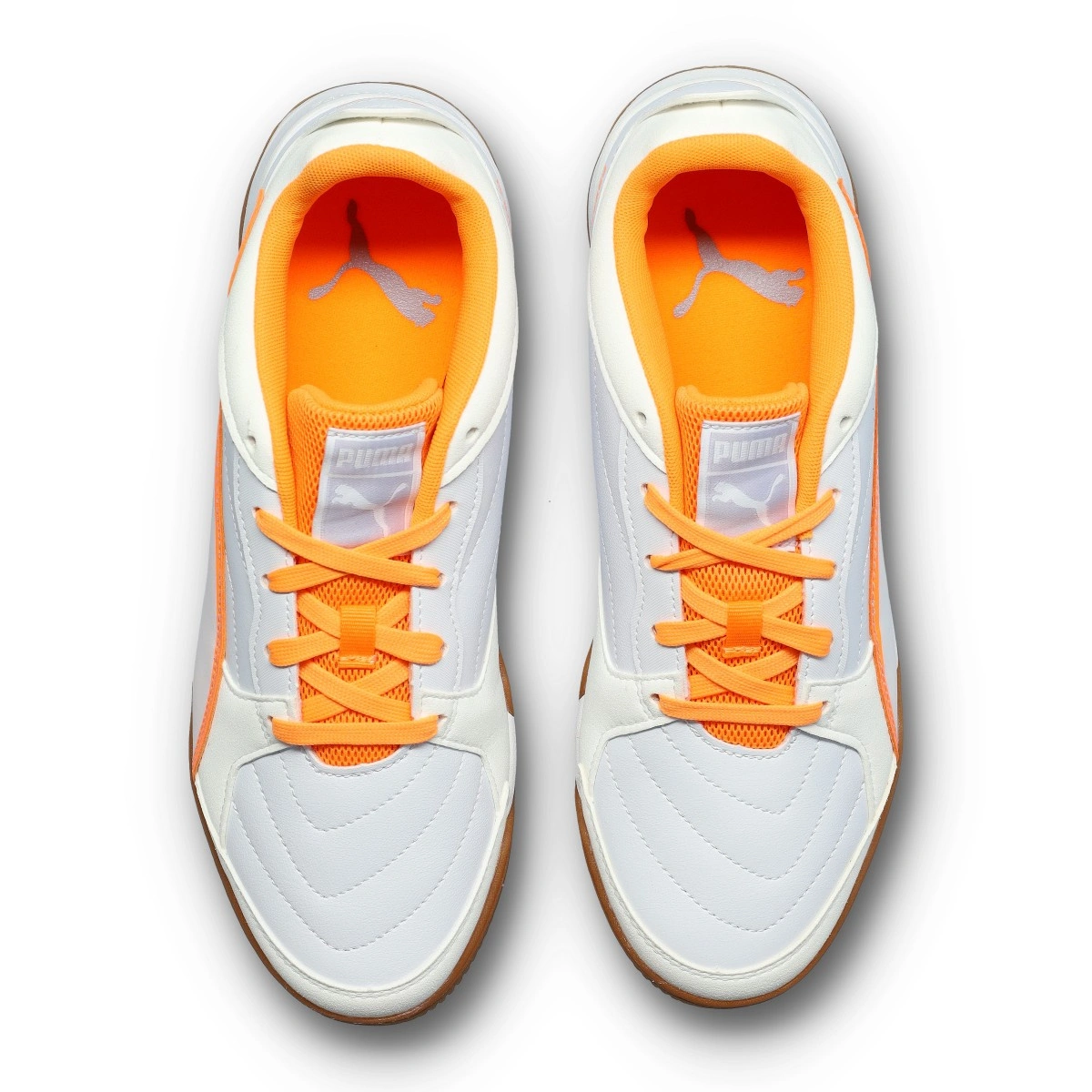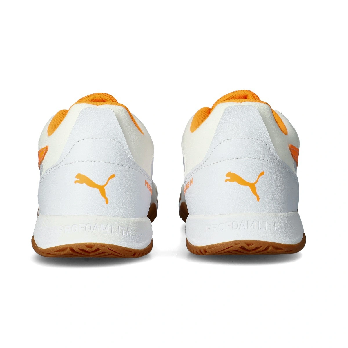Chaussure de football Puma Pressing IV Turf pour adulte. Chaussure à utiliser sur terrains de gazon artificiel moquette et gazon artificiel avec caoutchouc en couleur Orange.