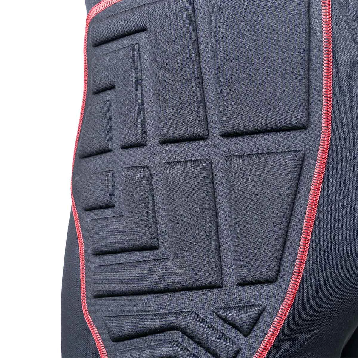Pantalon 3/4 pour gardien de but. Fait en tissu anti abrassif pour entraînements et marchs sur superficies agressives comme le terrain artificiel ou turf. Protections avec technologie EVA PROTECTIONS sur les principaux points d'impact : les anches et genoux. Le cautchouc EVA est un des matériaux qui restiste le mieux aux impacts. Avec une technique de thermo moulé, les protections ont plusieurs canaux de flexion pour mieux s'adapter à chaque footballeur.