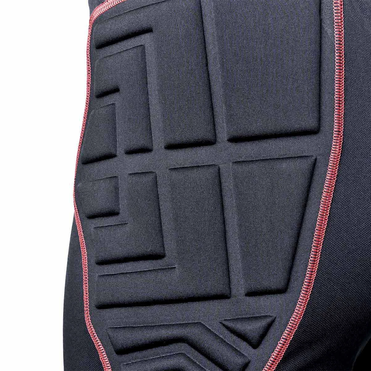Pantalon 3/4 pour gardien de but. Fait en tissu anti abrassif pour entraînements et marchs sur superficies agressives comme le terrain artificiel ou turf. Protections avec technologie EVA PROTECTIONS sur les principaux points d'impact : les anches et genoux. Le cautchouc EVA est un des matériaux qui restiste le mieux aux impacts. Avec une technique de thermo moulé, les protections ont plusieurs canaux de flexion pour mieux s'adapter à chaque footballeur.