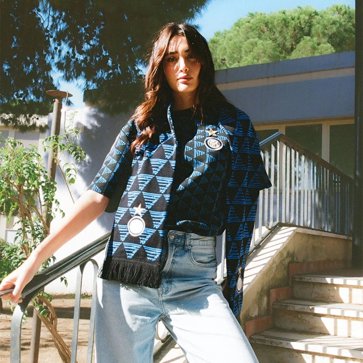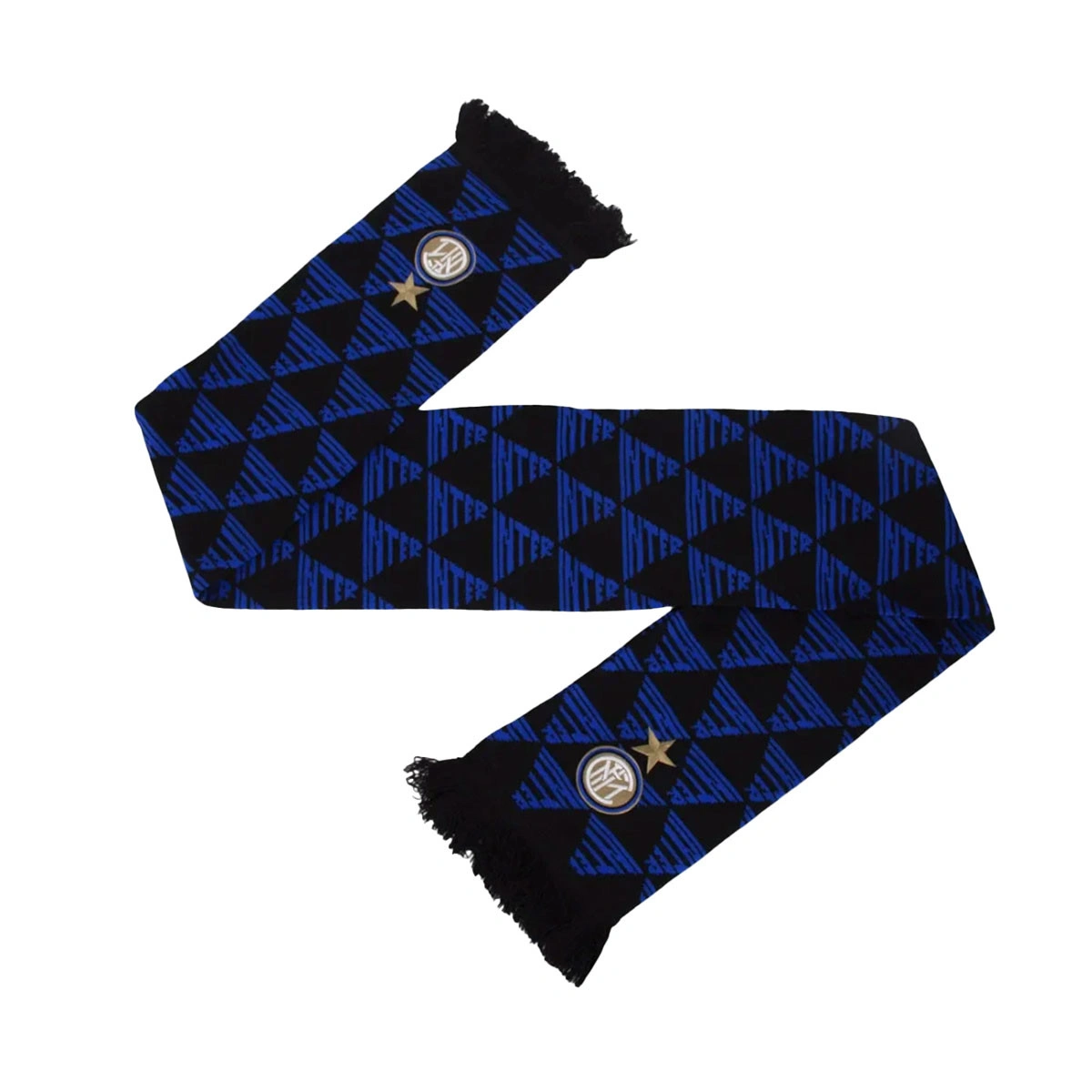 Au début des années 90, lorsque les maillots de l'Inter étaient célébrés pour leur créativité, le club a introduit un logo alternatif triangulaire qui est apparu comme un subtil motif ton sur ton sur plusieurs maillots de la première moitié de la décennie. Cette écharpe FC Internazionale l'inclut également.