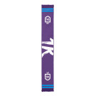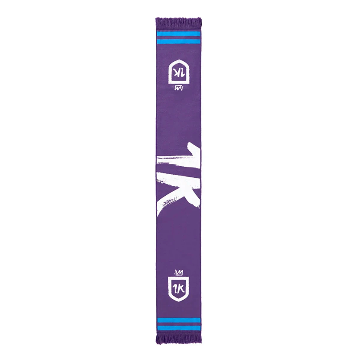 Écharpe à double tricot de l’équipe 1Kde la Kings League, avec franges décoratives assorties. Couleur: Purple, bleu et blanc