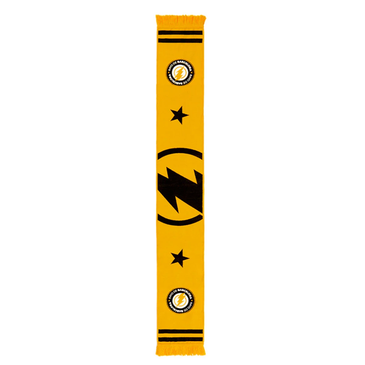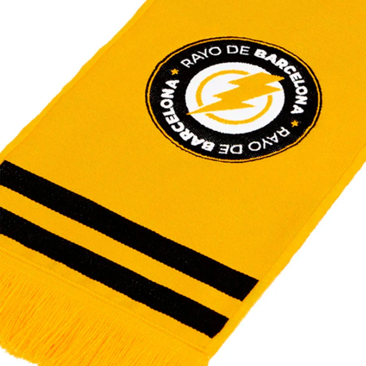 Écharpe double en tricot de la Kings League Rayo de Barcelona, avec franges décoratives assorties. Couleur : jaune et noir.